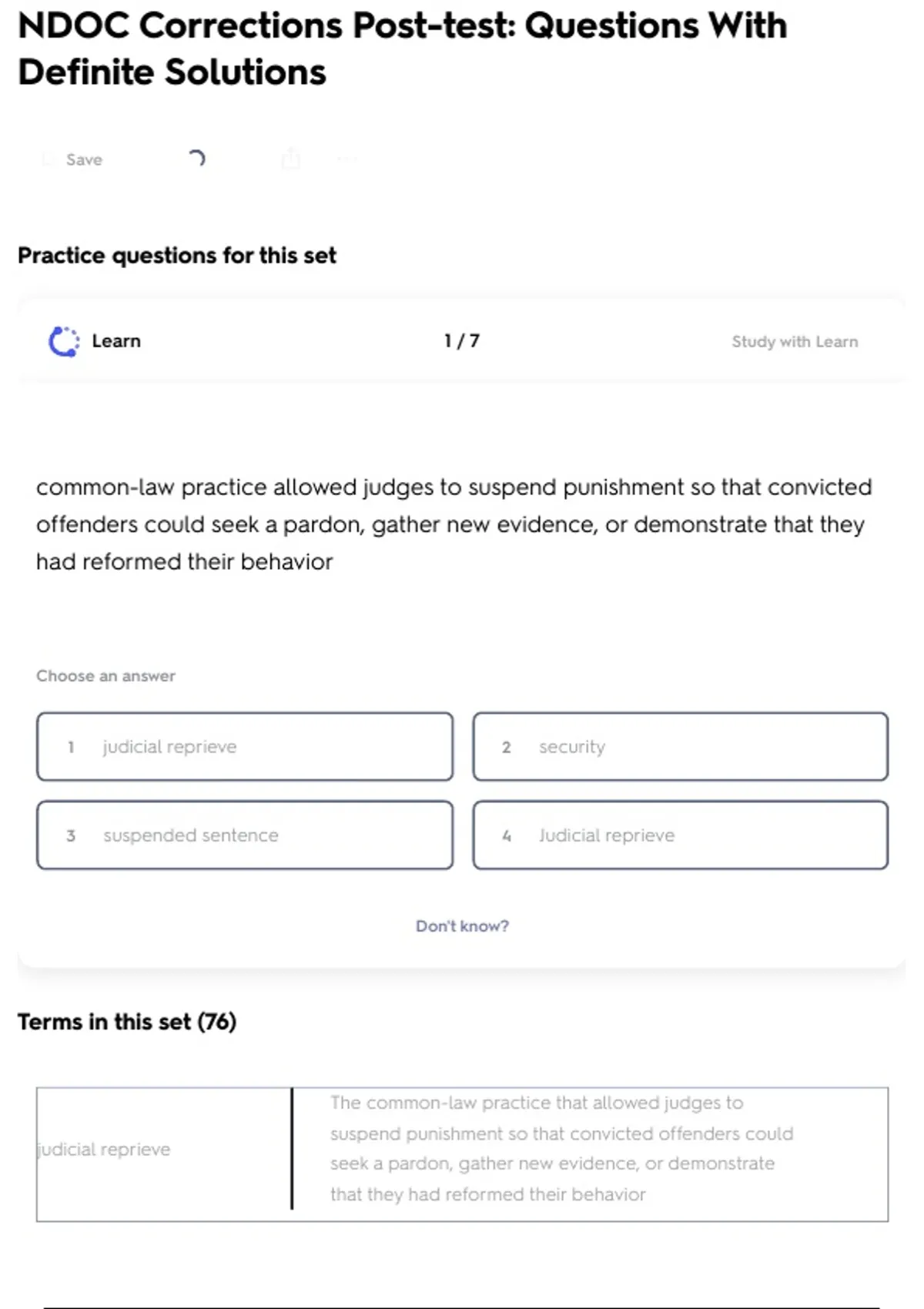 NDOC Corrections Post-test: Questions With Definite Solutions