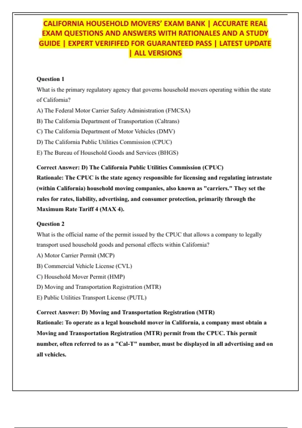 Rationale: To operate as a legal household mover in California, a company must obtain a