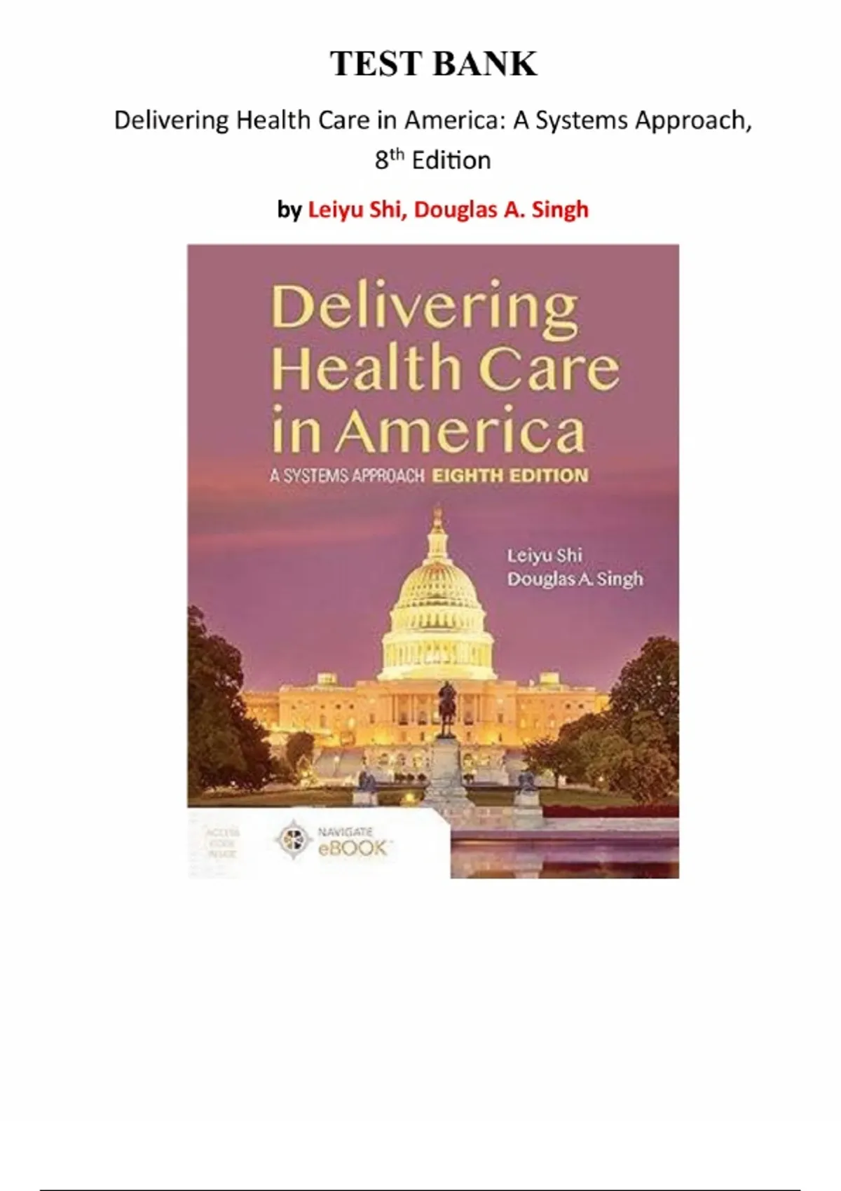 Delivering Health Care in America: A Systems Approach (8th Edition) by Leiyu Shi & Douglas A. Singh – Test Bank | Chapters 1–14