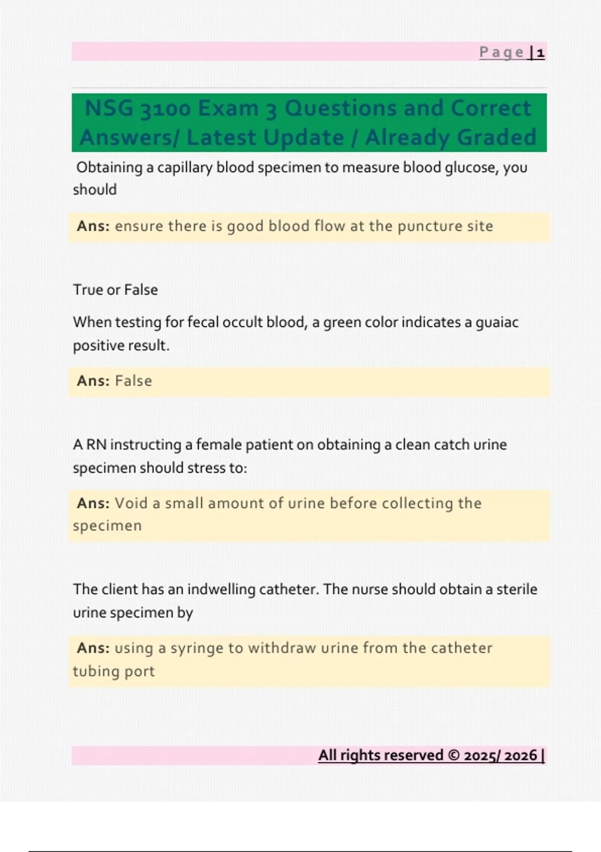 NSG 3100 Exam 3 Questions and Correct Answers/ Latest Update / Already Graded