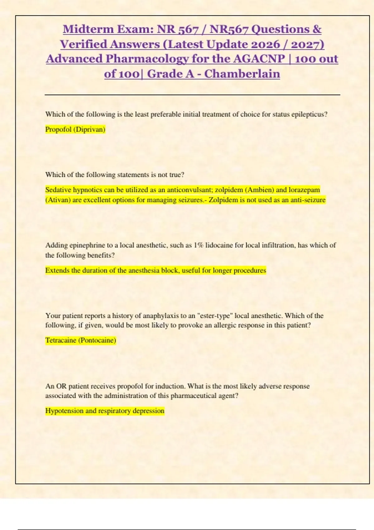 , Midterm Exam: NR 567 / NR567 Questions &
