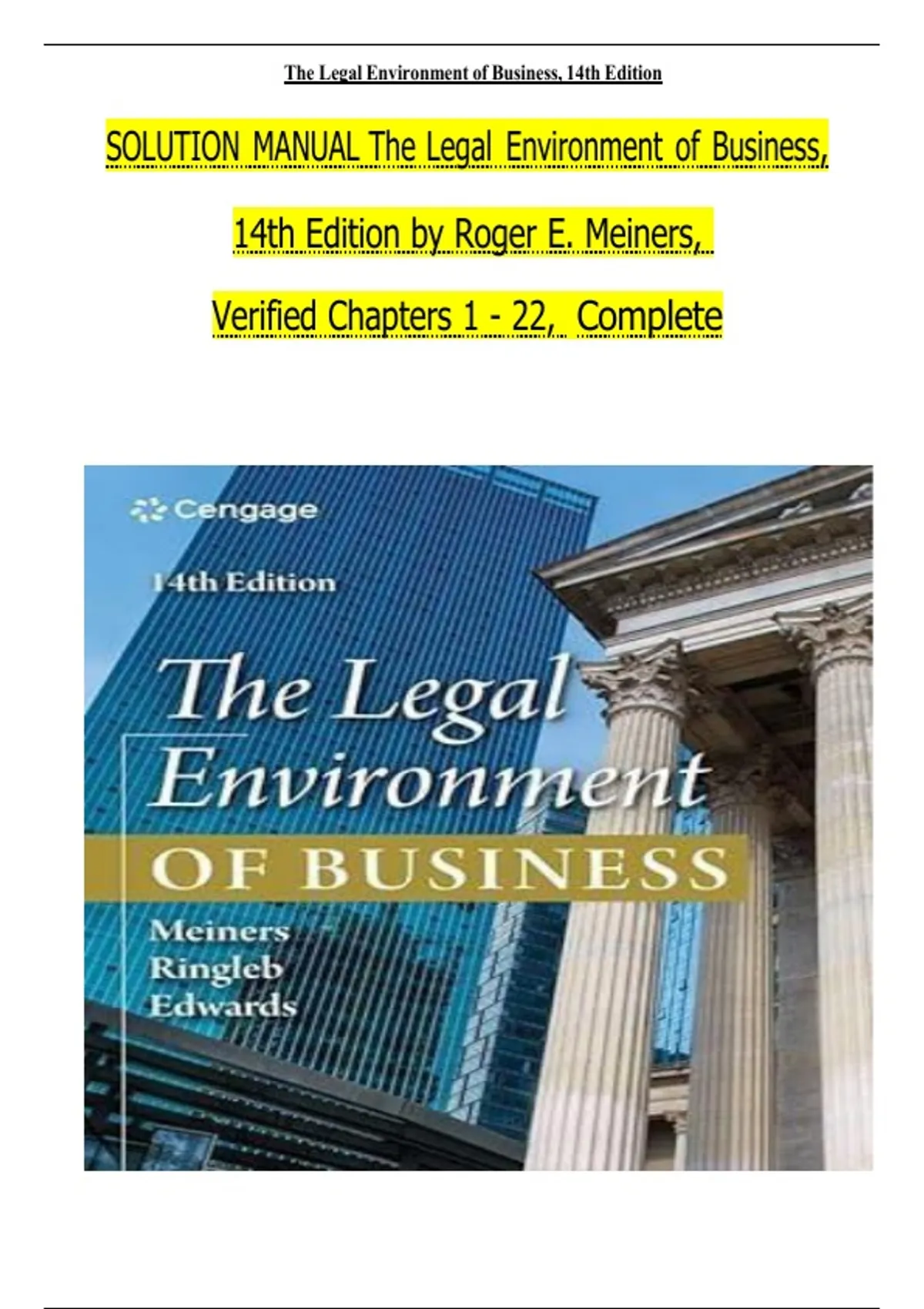 SOLUTION MANUAL The Legal Environment of Business,