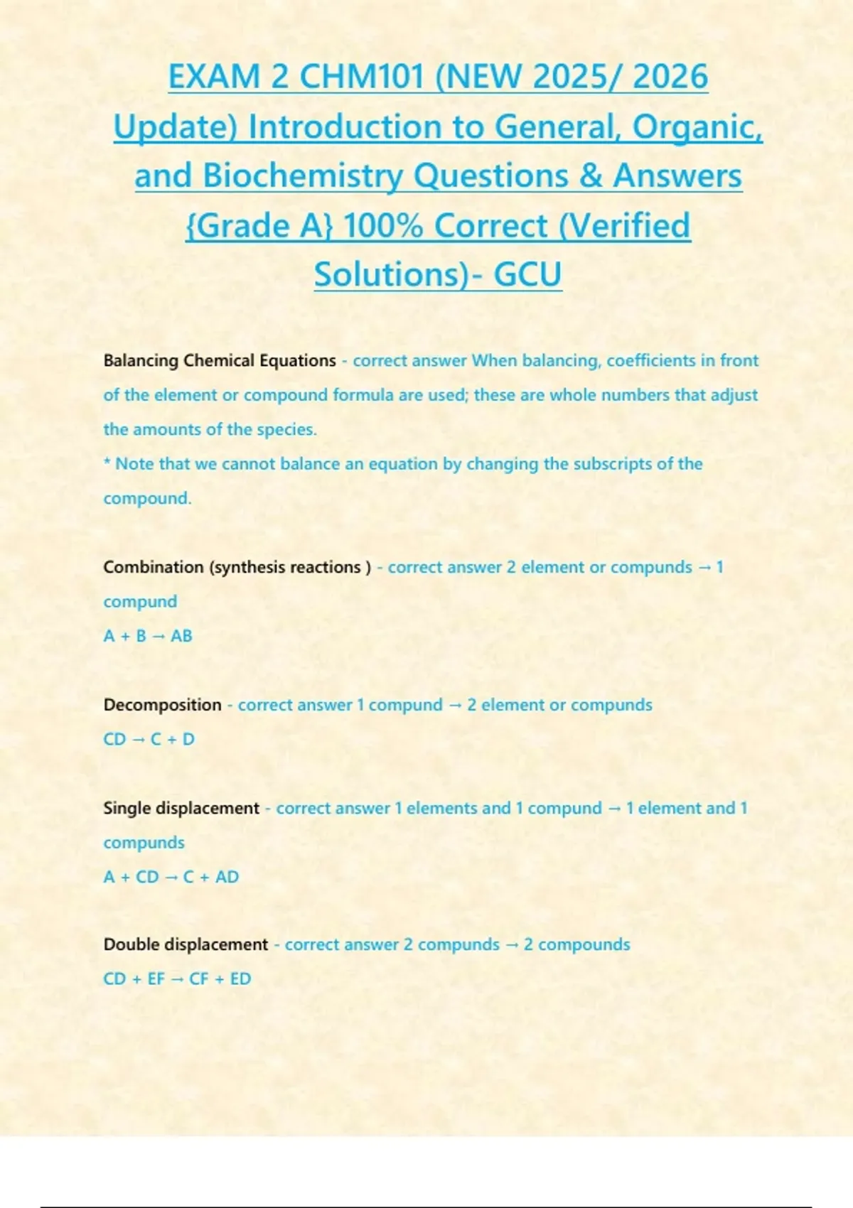 EXAM 2 CHM101 (NEW 2025/ 2026 Update) Introduction to General, Organic, and Biochemistry Questions & Answers {Grade A} 100% Correct (Verified Solutions)- GCU