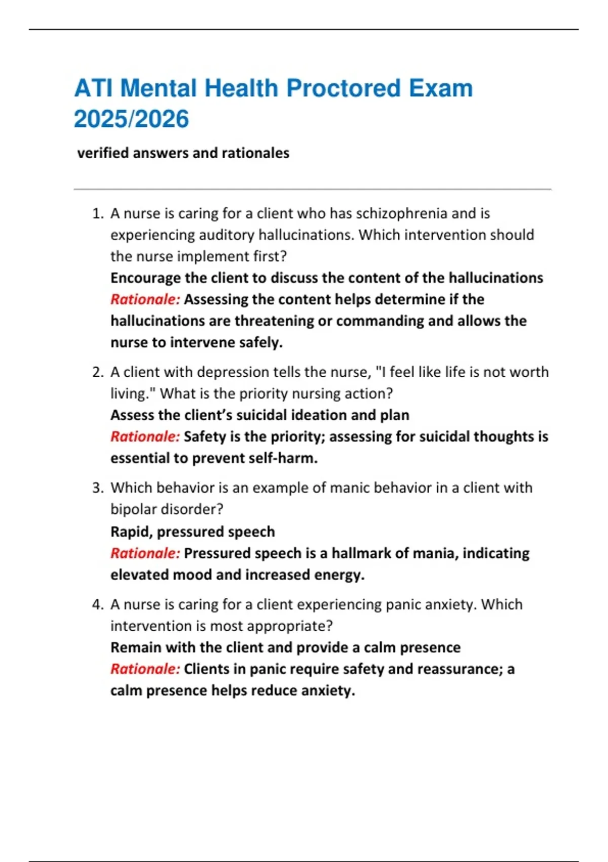 ATI Mental Health Proctored Exam 2025/2026