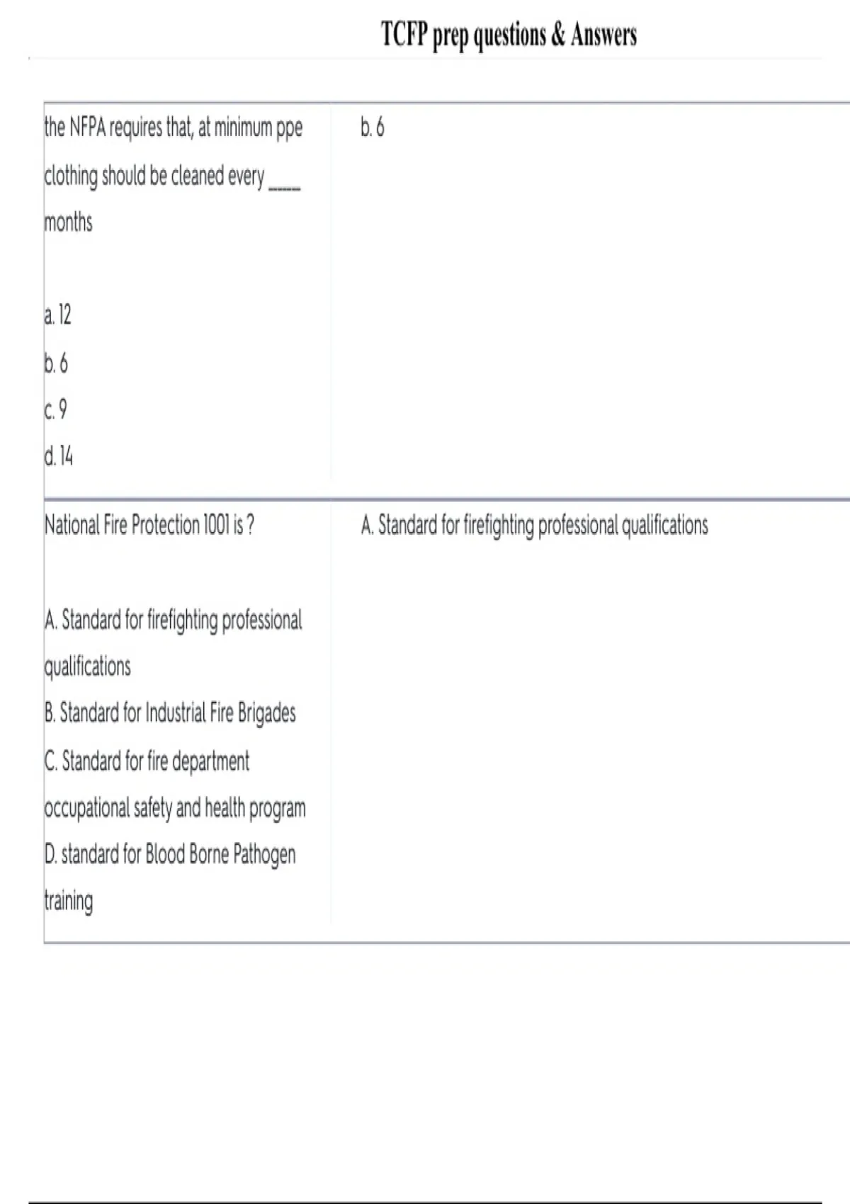 , TCFP prep questions & Answers