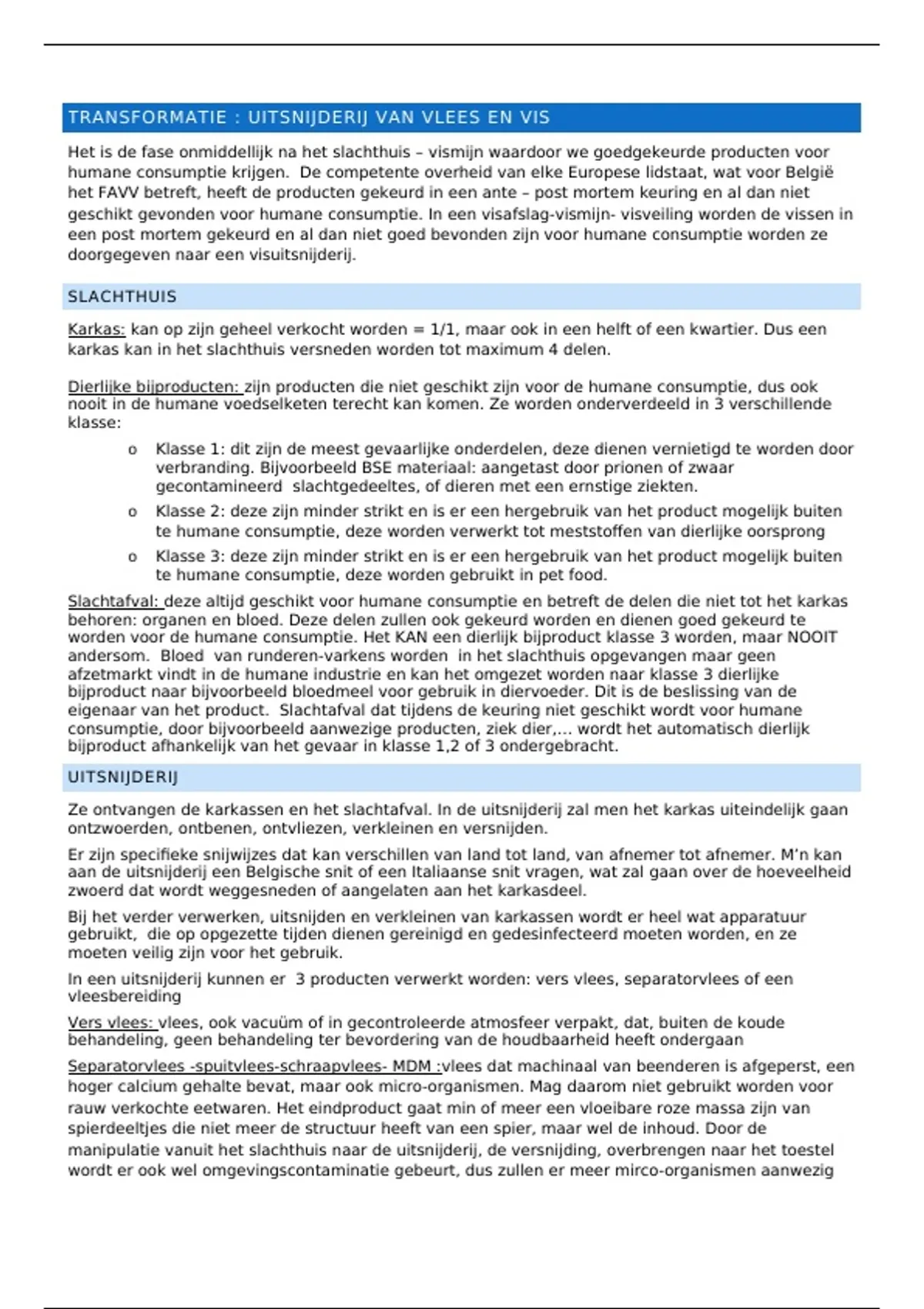 TRANSFORMATIE : UITSNIJDERIJ VAN VLEES EN VIS