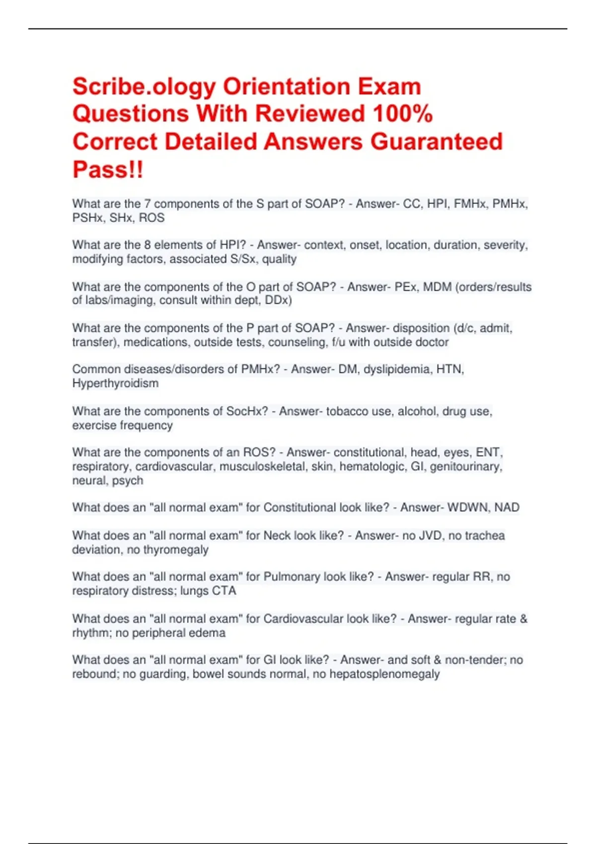 What does an "all normal exam" for Neck look like? - Answer- no JVD, no trachea