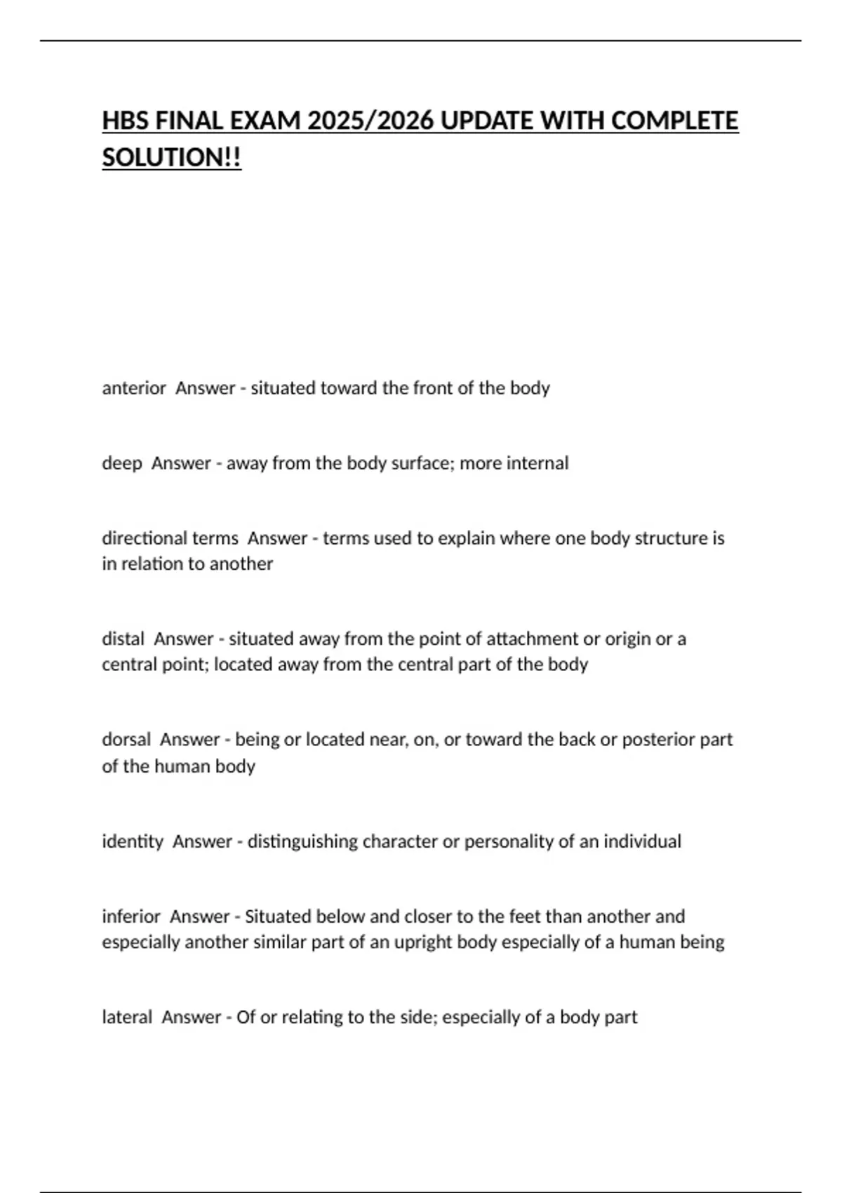 HBS FINAL EXAM 2025/2026 UPDATE WITH COMPLETE