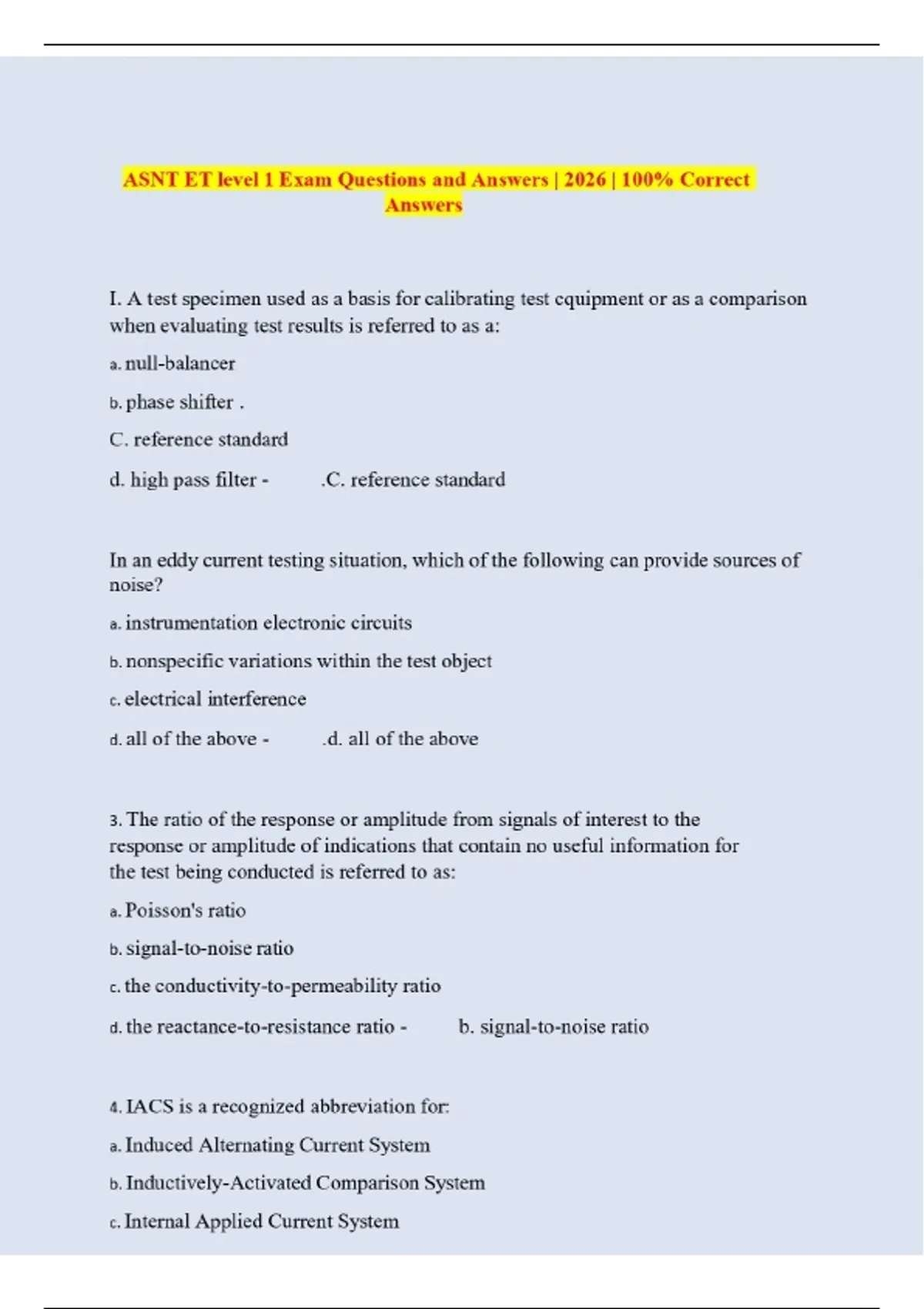 asnt et level 1 exam questions and answers 2026