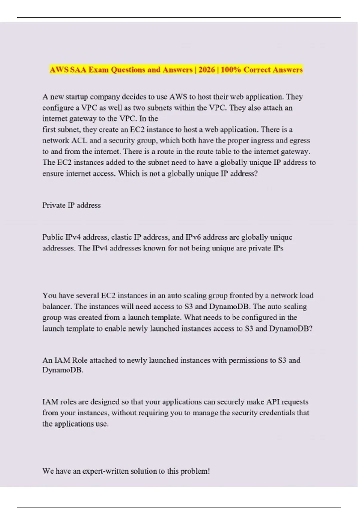 AWS SAA Exam Questions and Answers | 2026 | 100% Correct Answers