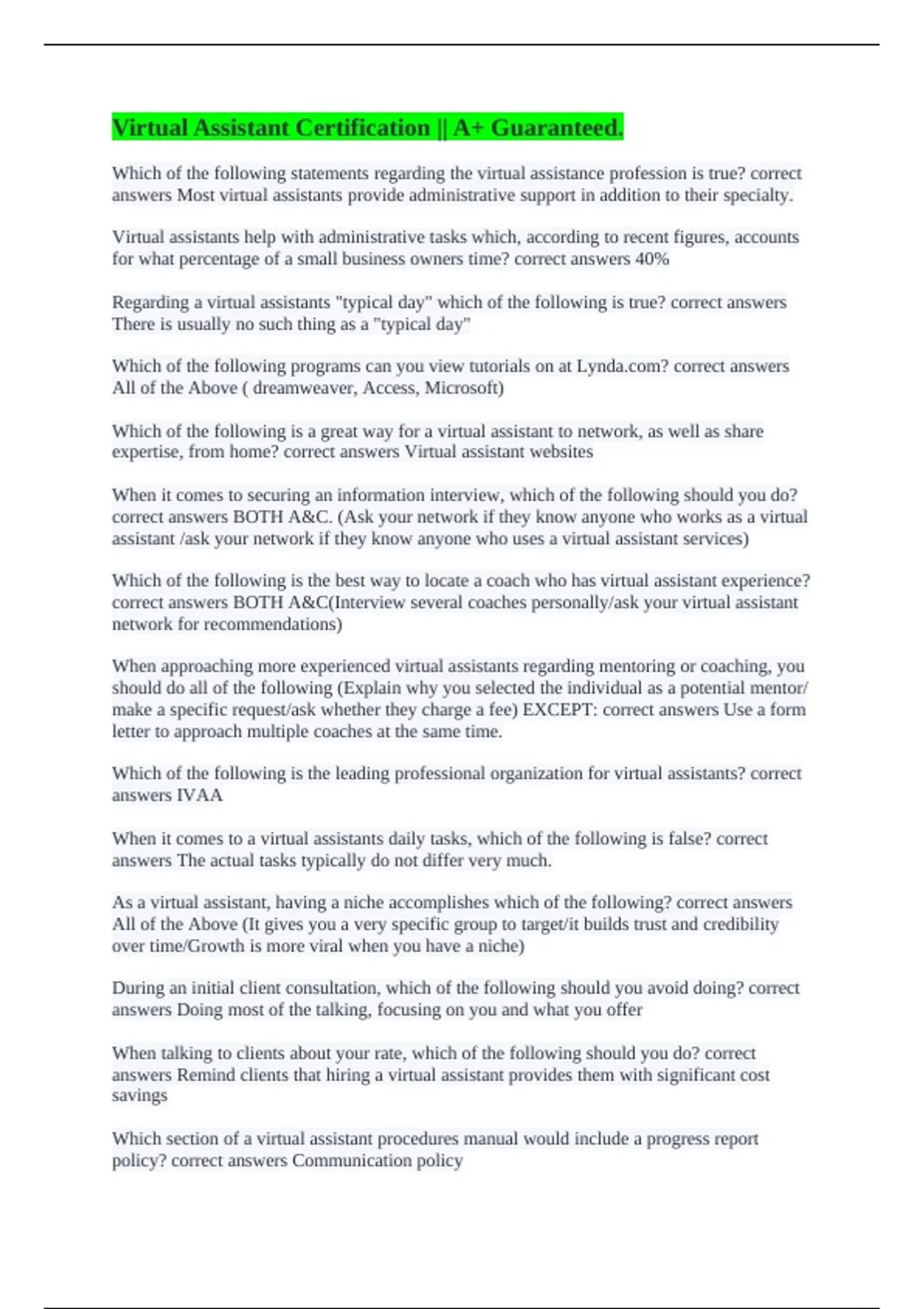 Regarding a virtual assistants "typical day" which of the following is true? correct answers