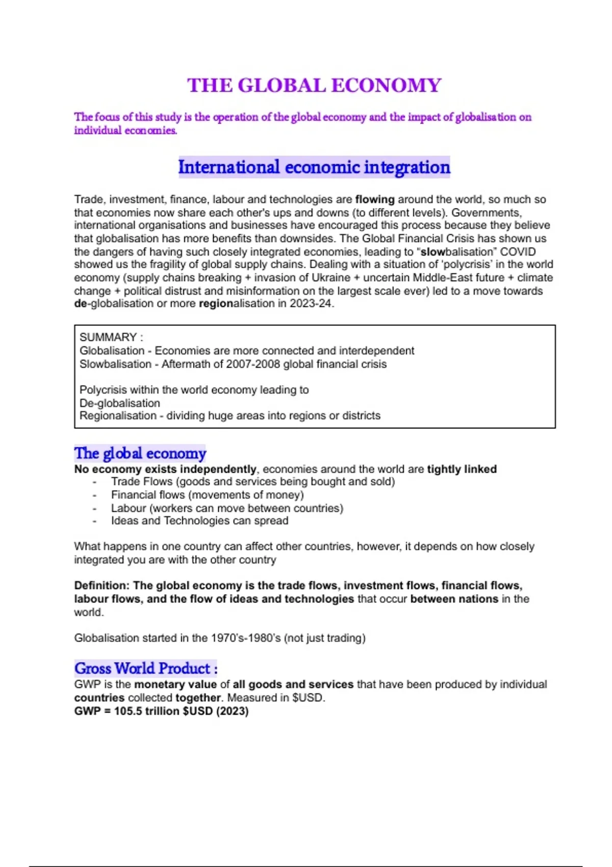 The focus of this study is the operation of the global economy and the impact of globalisation on
