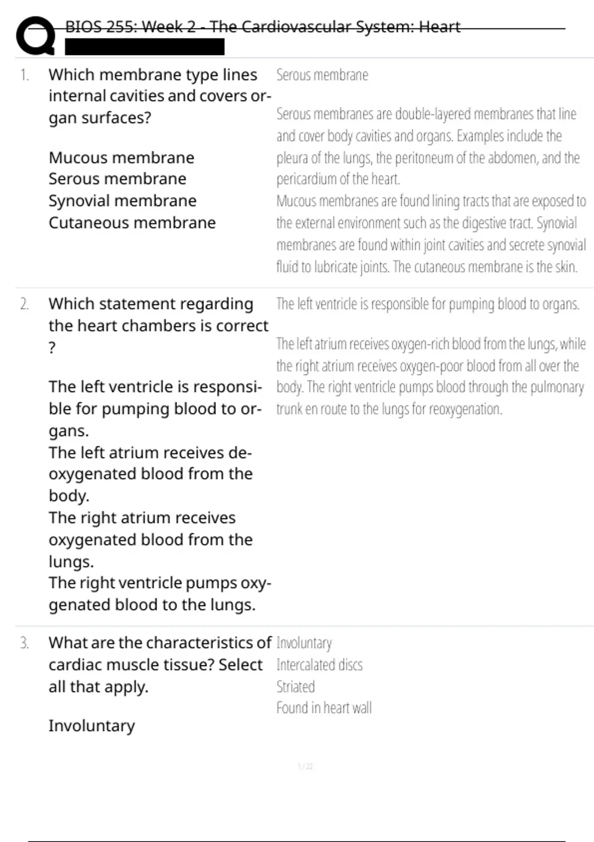 , BIOS 255: Week 2 - The Cardiovascular System: Heart
