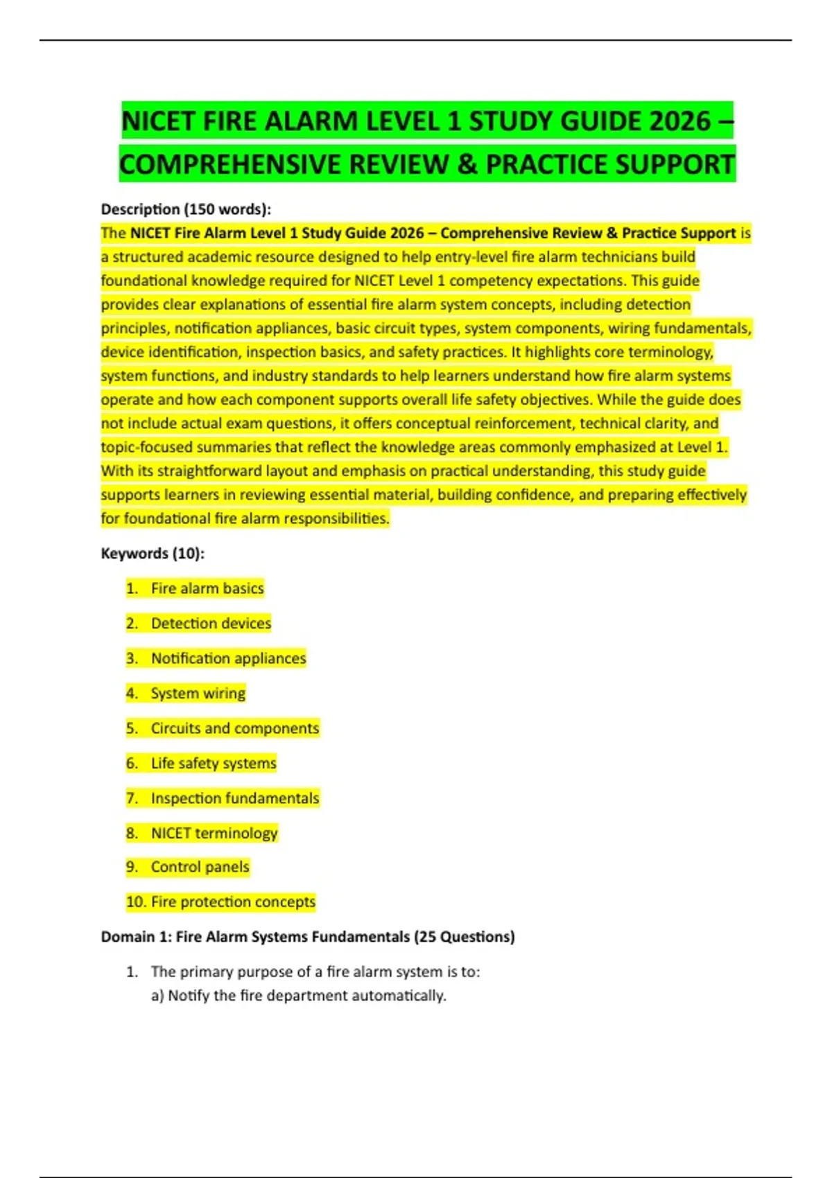 The NICET Fire Alarm Level 1 Study Guide 2026 – Comprehensive Review & Practice Support is