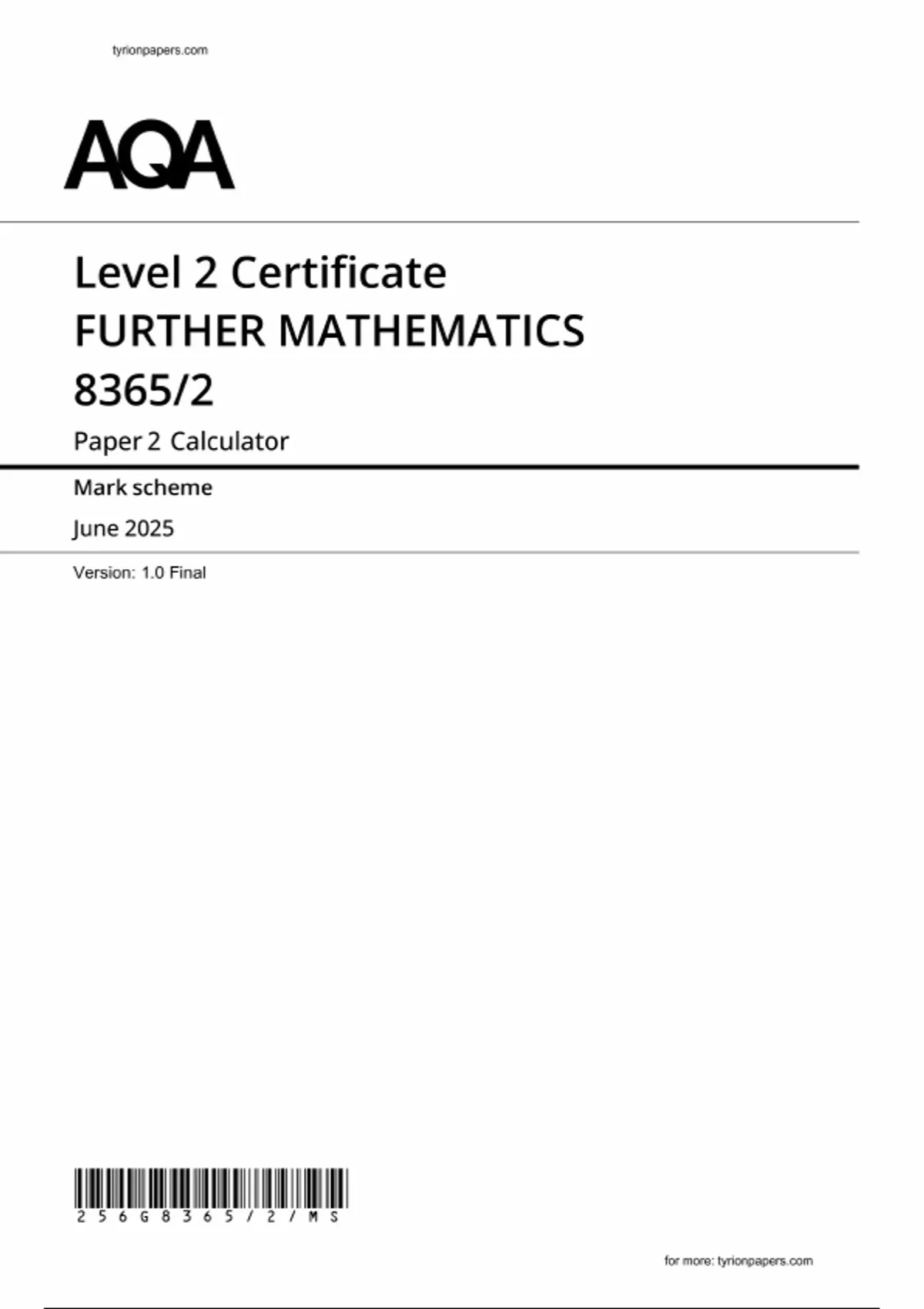 2025 AQA GCSE FURTHER MATHEMATICS Mark Scheme Paper 2 (8365/2: Calculator)