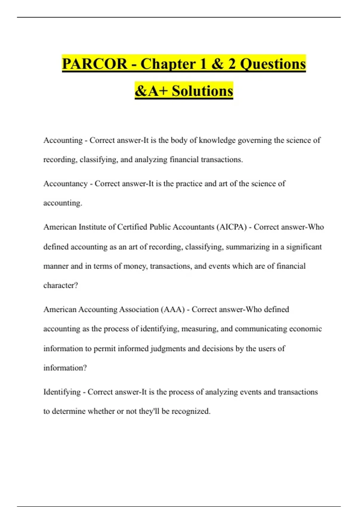PARCOR - Chapter 1 & 2 Questions &A+ Solutions
