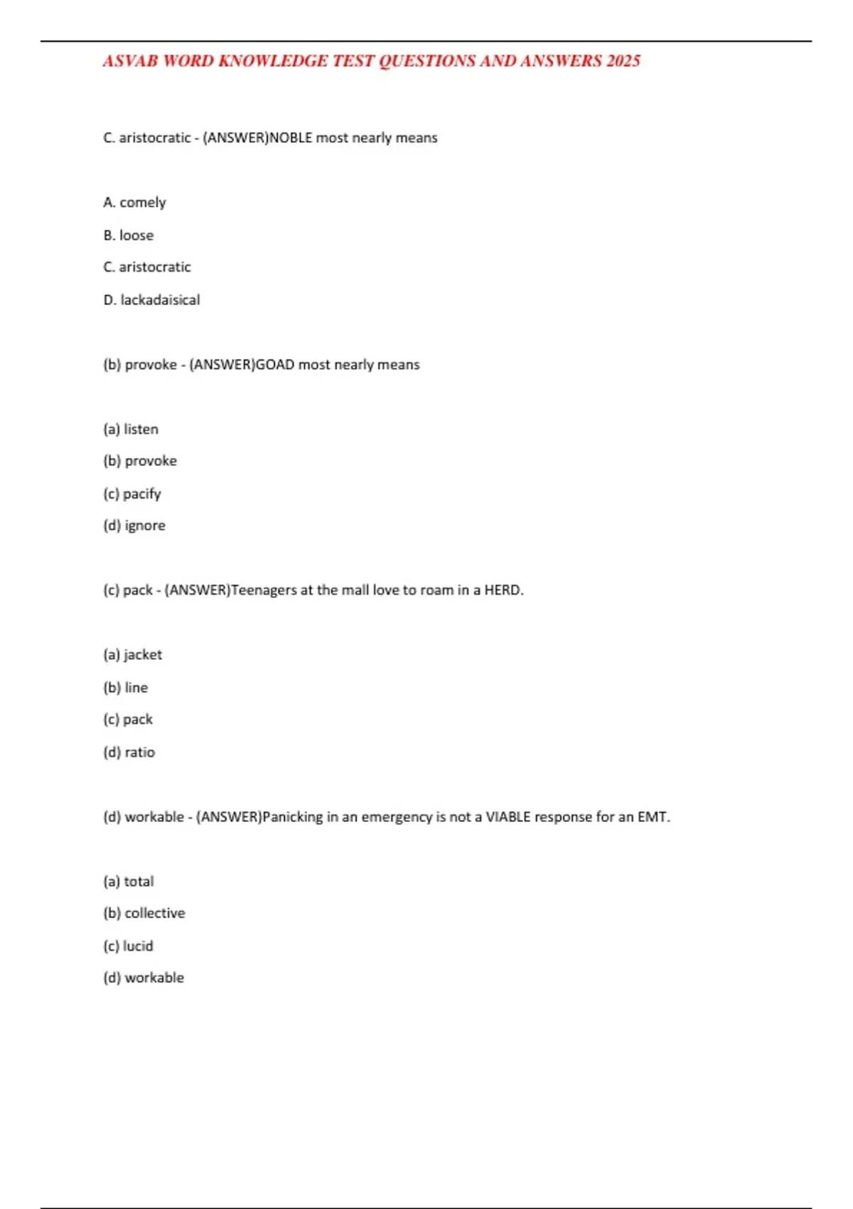 ,ASVAB WORD KNOWLEDGE TEST QUESTIONS AND ANSWERS 2025