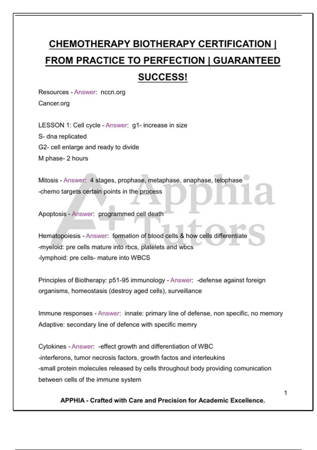 Principles of Biotherapy: p51-95 immunology - Answer: -defense against foreign