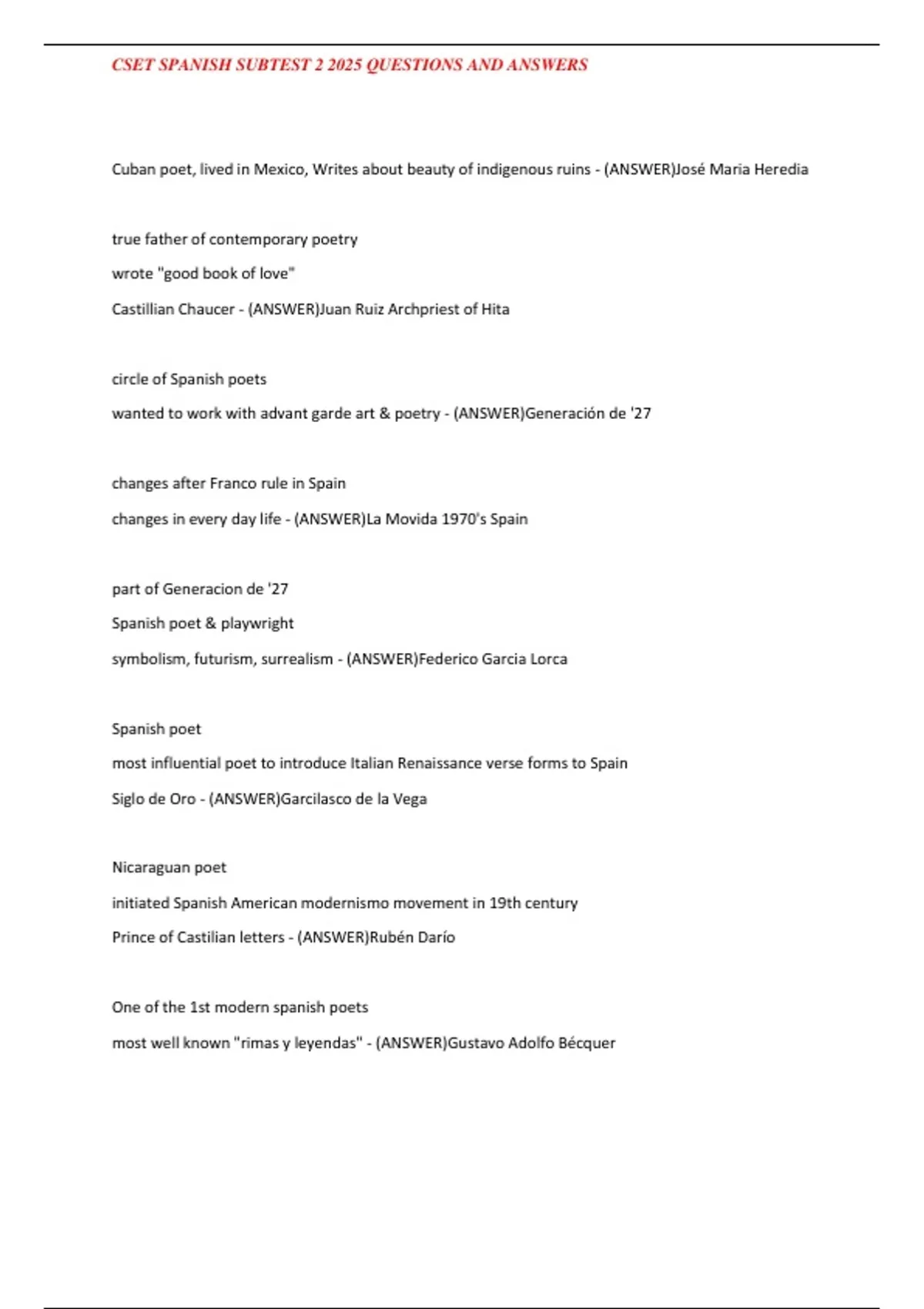 , CSET SPANISH SUBTEST 2 2025 QUESTIONS AND ANSWERS
