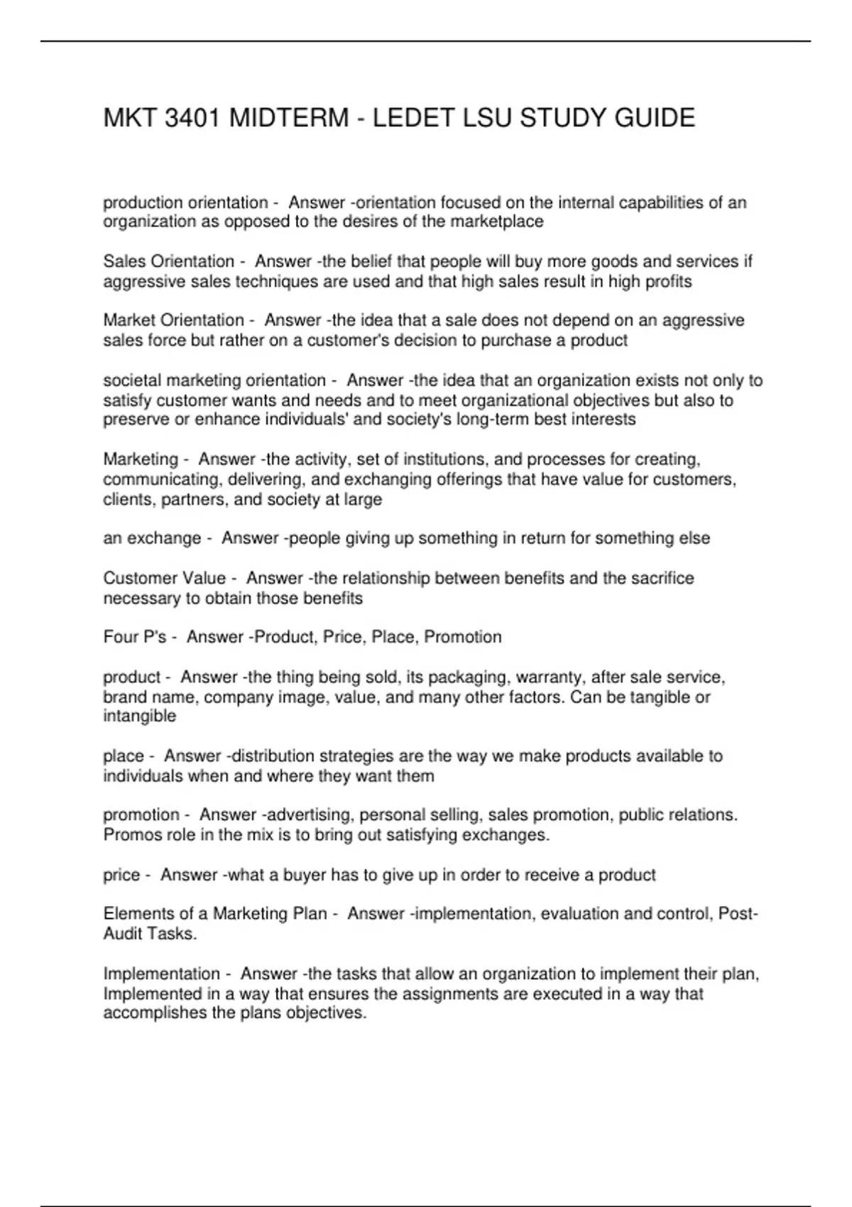 MKT 3401 MIDTERM - LEDET LSU STUDY GUIDE