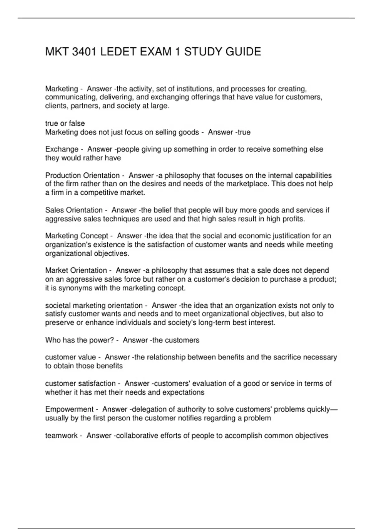 MKT 3401 LEDET EXAM 1 STUDY GUIDE