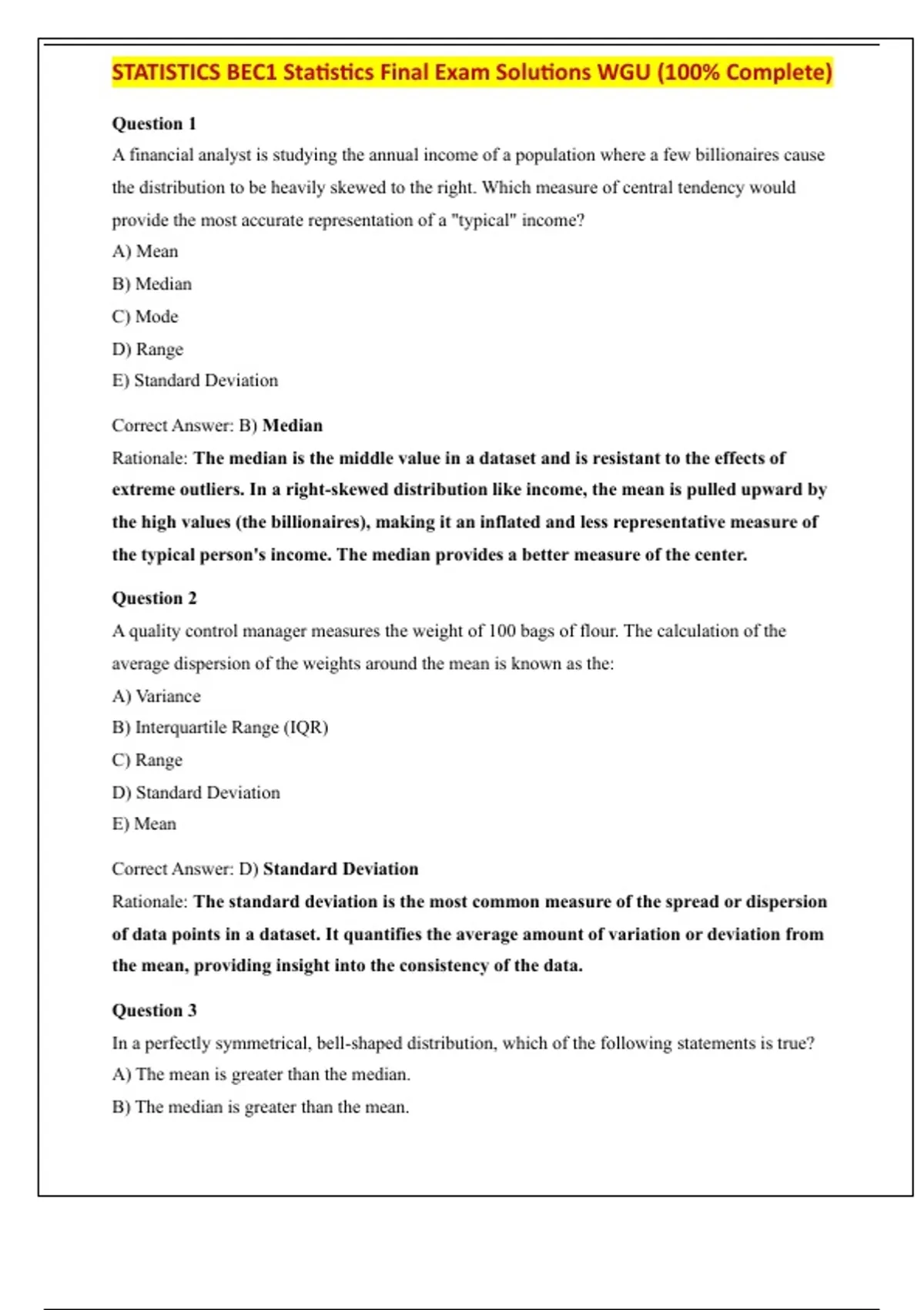Rationale: The standard deviation is the most common measure of the spread or dispersion