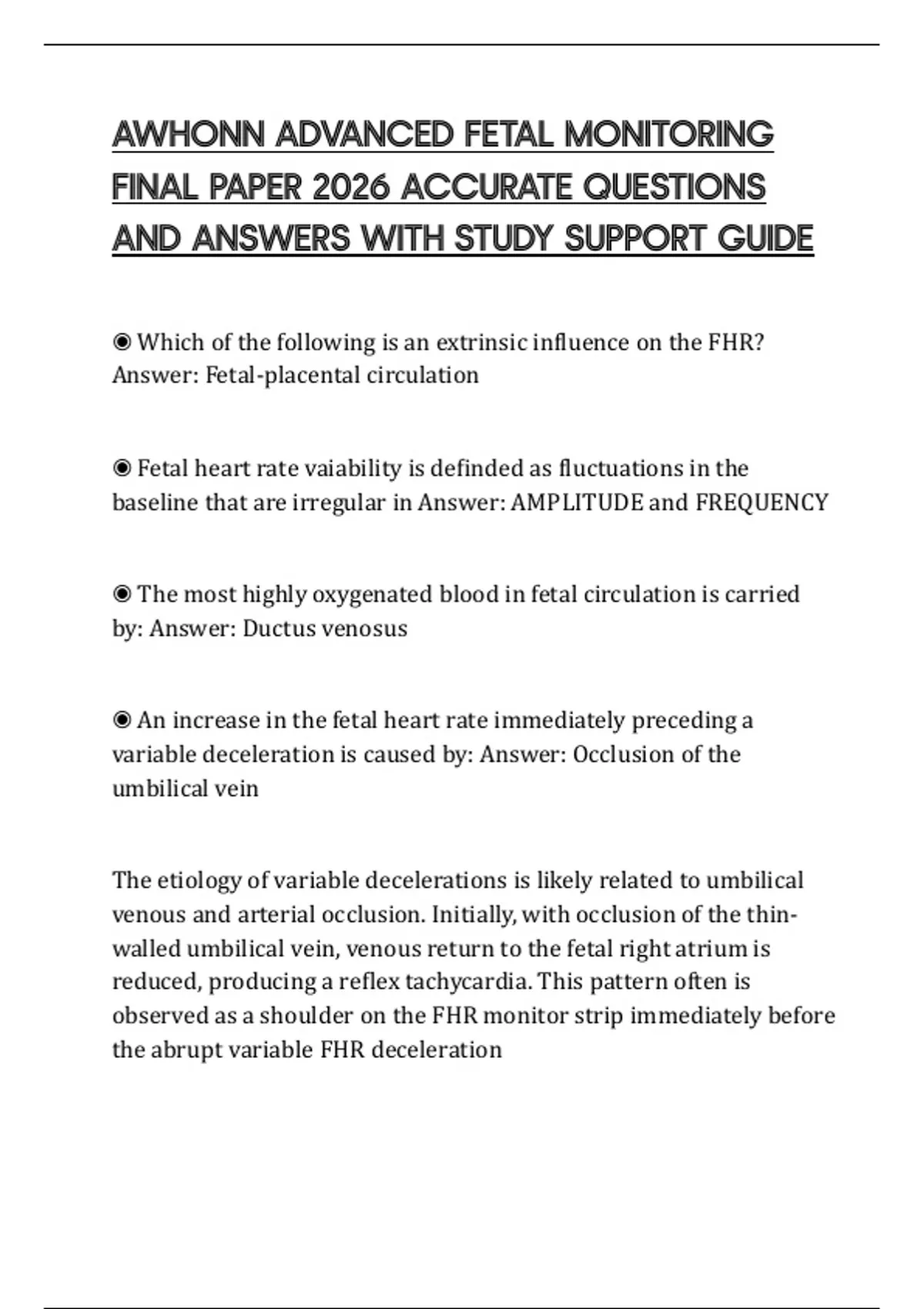 The etiology of variable decelerations is likely related to umbilical
