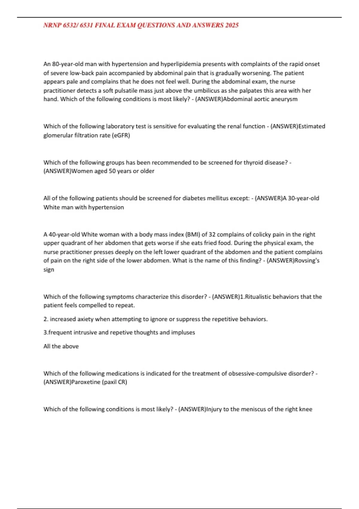 , NRNP 6532/ 6531 FINAL EXAM QUESTIONS AND ANSWERS 2025