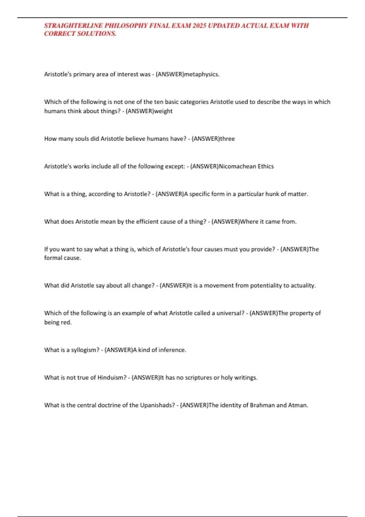 , STRAIGHTERLINE PHILOSOPHY FINAL EXAM 2025 UPDATED ACTUAL EXAM WITH