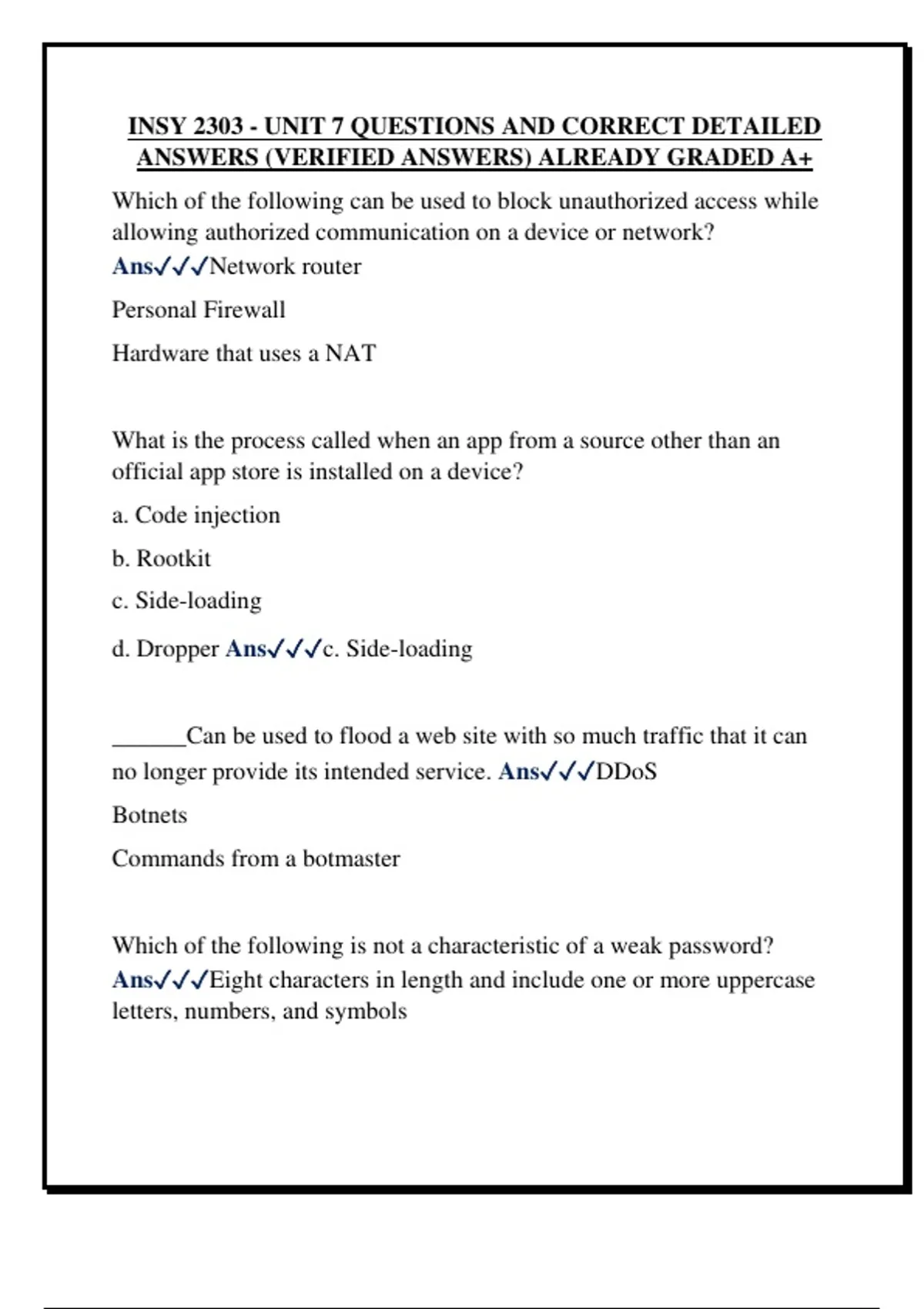 ANSWERS (VERIFIED ANSWERS) ALREADY GRADED A+