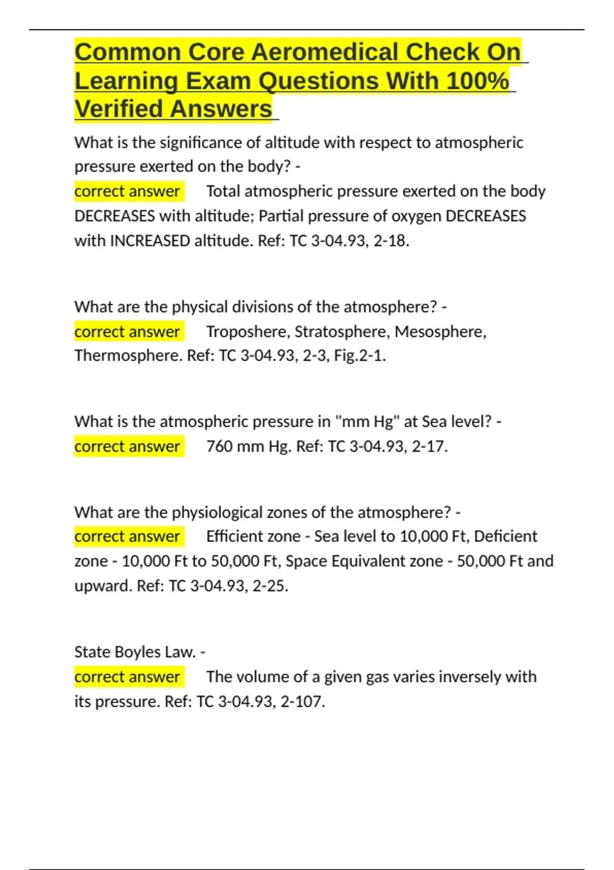 correct answer ✅760 mm Hg. Ref: TC 3-04.93, 2-17.