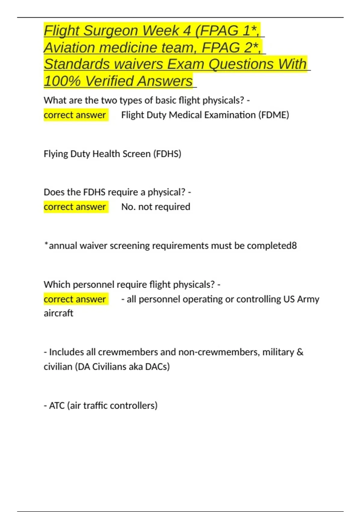 correct answer ✅Flight Duty Medical Examination (FDME)