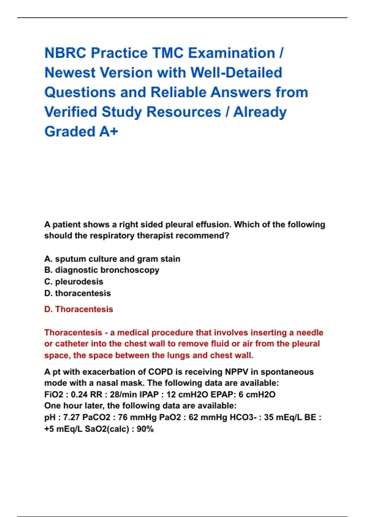 NBRC Practice TMC Examination / Newest Version with Well-Detailed Questions and Reliable Answers from Verified Study Resources / Already Graded A+