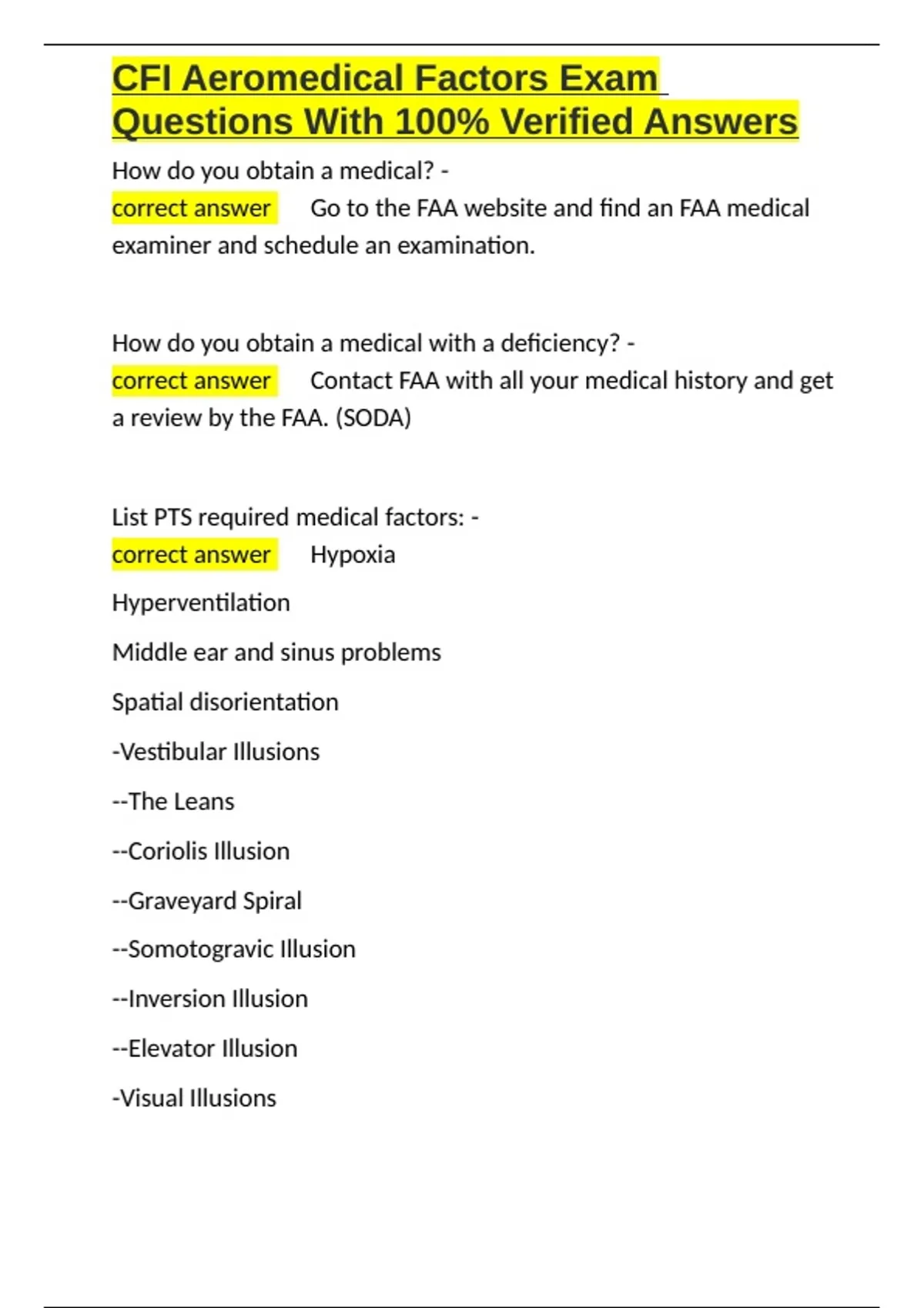 , CFI Aeromedical Factors Exam