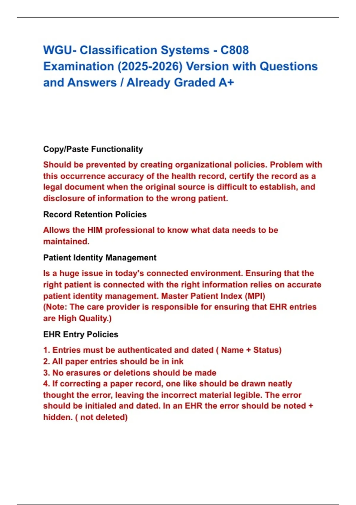 WGU- Classification Systems - C808 Examination () Version with Questions and Answers / Already Graded A+
