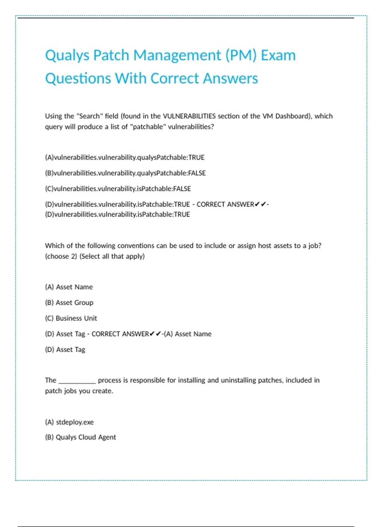 Qualys Patch Management (PM) Exam