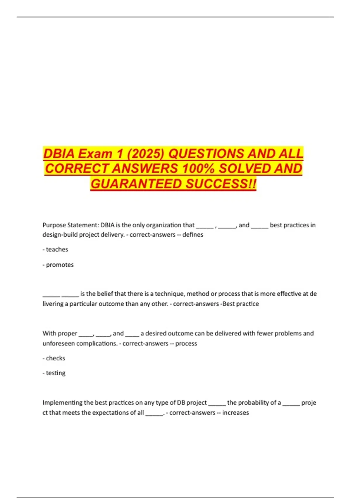 DBIA Exam 1 (2025) QUESTIONS AND ALL