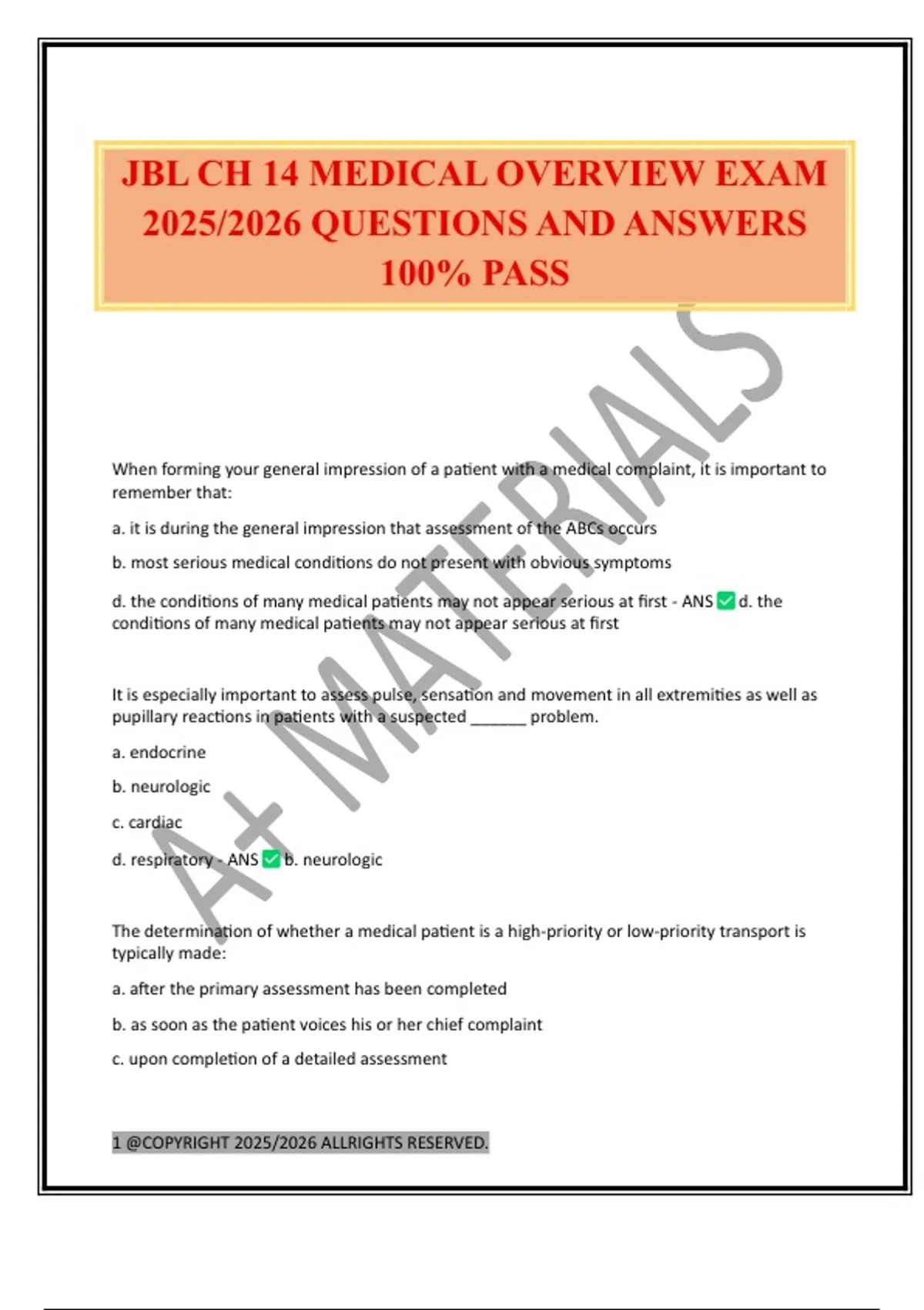 JBL CH 14 MEDICAL OVERVIEW EXAM
