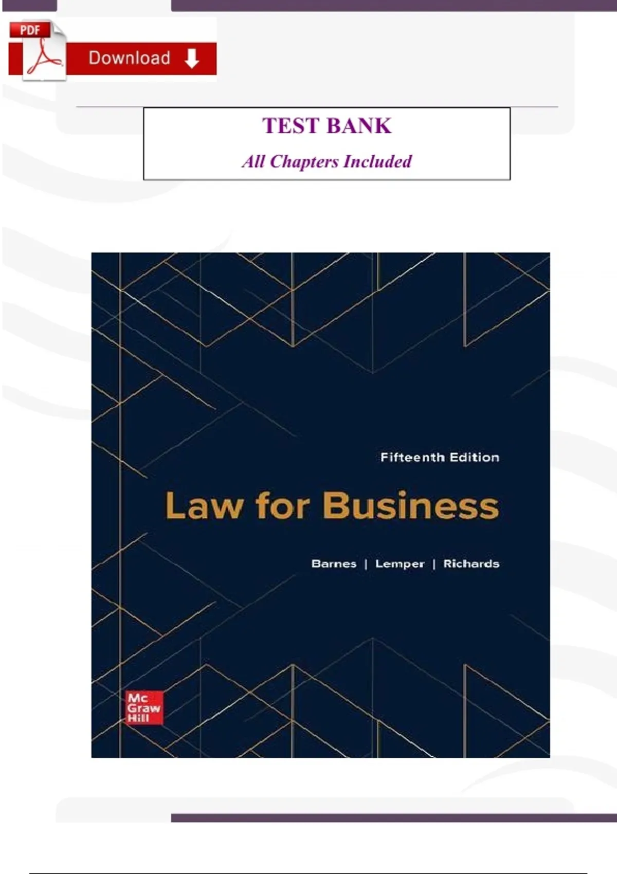 Instructor Solution Manual – Law for Business, 15th Edition (Barnes & Lemper) Support your teaching and course preparation with this Instructor Solution Manual for the 15th Edition of Law for Business by A. James Barnes & Timothy Lemper. This comprehensive resource provides fully worked-out solutions, teaching guidance, and answer keys for exercises, case studies, and discussion questions, making it an essential tool for instructors, lecturers, and teaching assistants. Aligned with the 15th Edition textbook, this solution manual helps educators efficiently manage class assignments, exams, and classroom discussions while ensuring accurate and consistent instruction in business law. What This Instructor Solution Manual Includes Chapter-by-chapter solutions to exercises, problems, and case studies Verified answers with explanations Teaching guidance and classroom support Fully aligned with the 15th Edition textbook Ideal for instructors, lecturers, and teaching assistants Key Topics Covered Fundamentals of business law Contracts and commercial transactions Employment and labor law Tort and liability issues Property and intellectual property law Agency and business organizations Ethics, compliance, and corporate governance Legal decision-making in business contexts Perfect For Instructors teaching business law courses Business administration and law programs Anyone using the 15th Edition Law for Business textbook