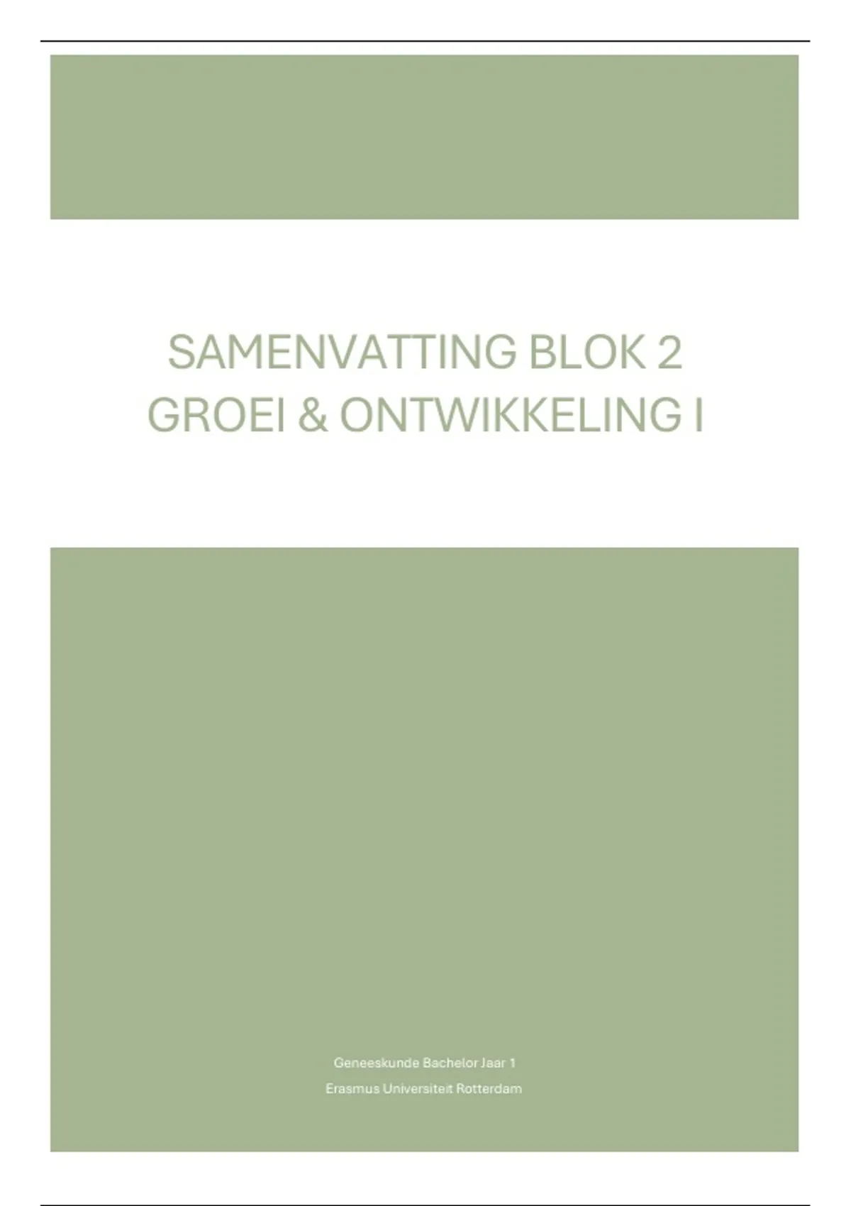 Samenvatting EUR Geneeskunde Jaar 1 Blok 2 Groei & Ontwikkeling I 2025/26