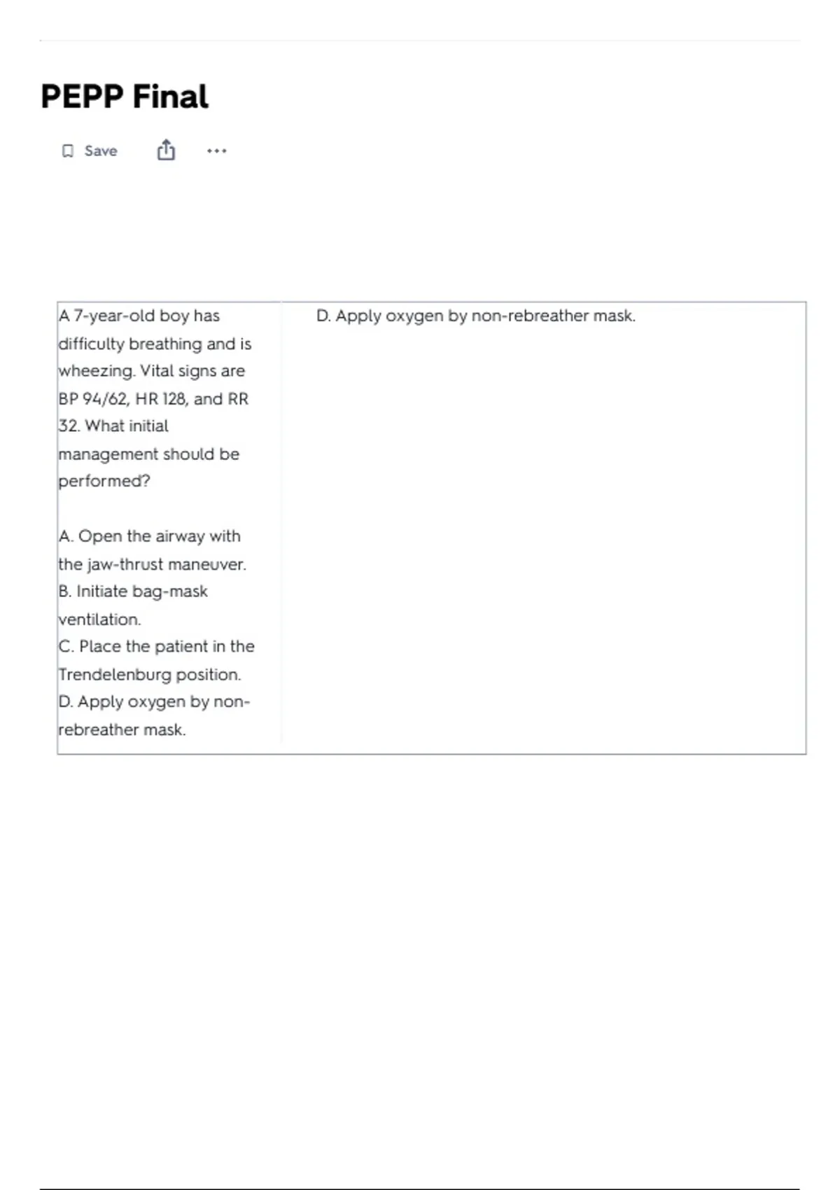 A 7-year-old boy has D. Apply oxygen by non-rebreather mask.