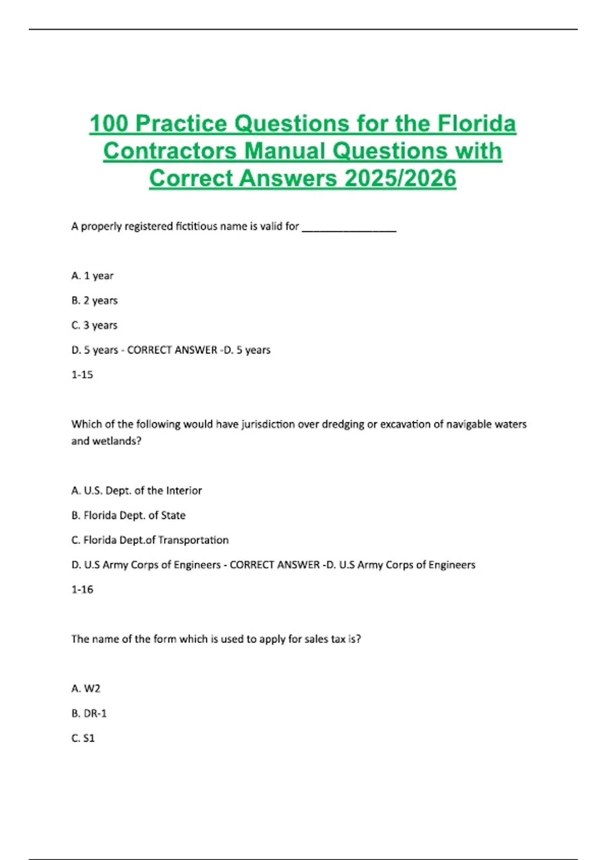 100 Practice Questions for the Florida ...ons with Correct Answers .