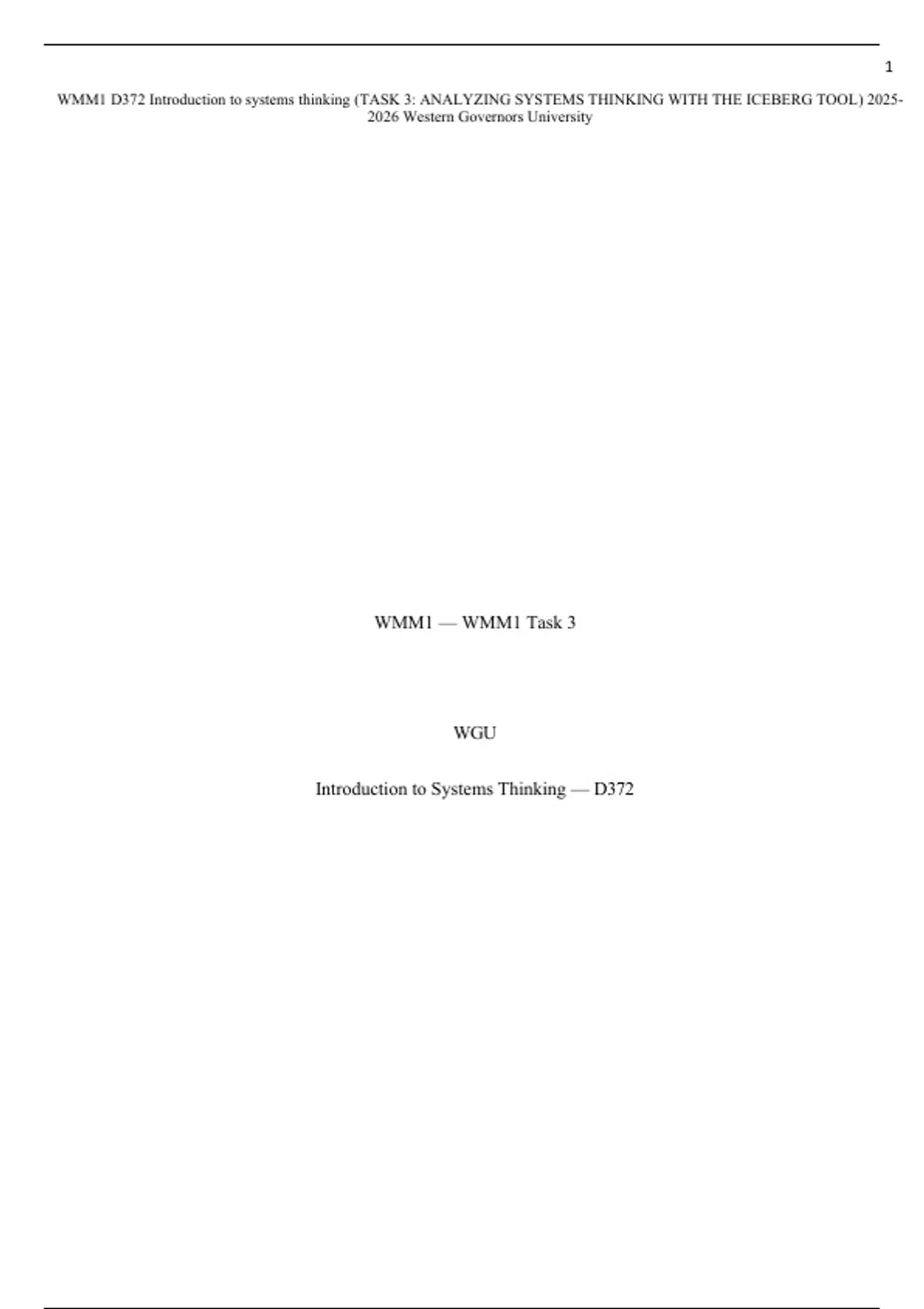 WMM1 D372 Introduction to systems thinking (TASK 3: ANALYZING SYSTEMS THINKING WITH THE ICEBERG TOOL) 2025-