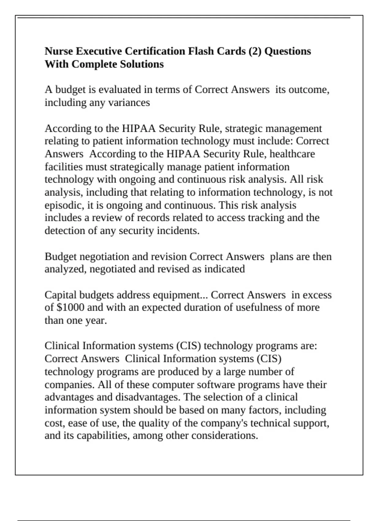 Nurse Executive Certification Flash Cards (2) Questions With Complete Solutions