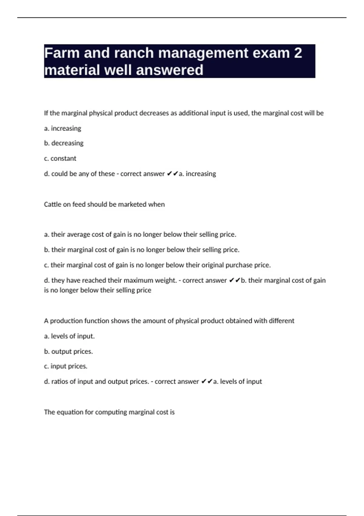 Farm and ranch management exam 2 material well answered