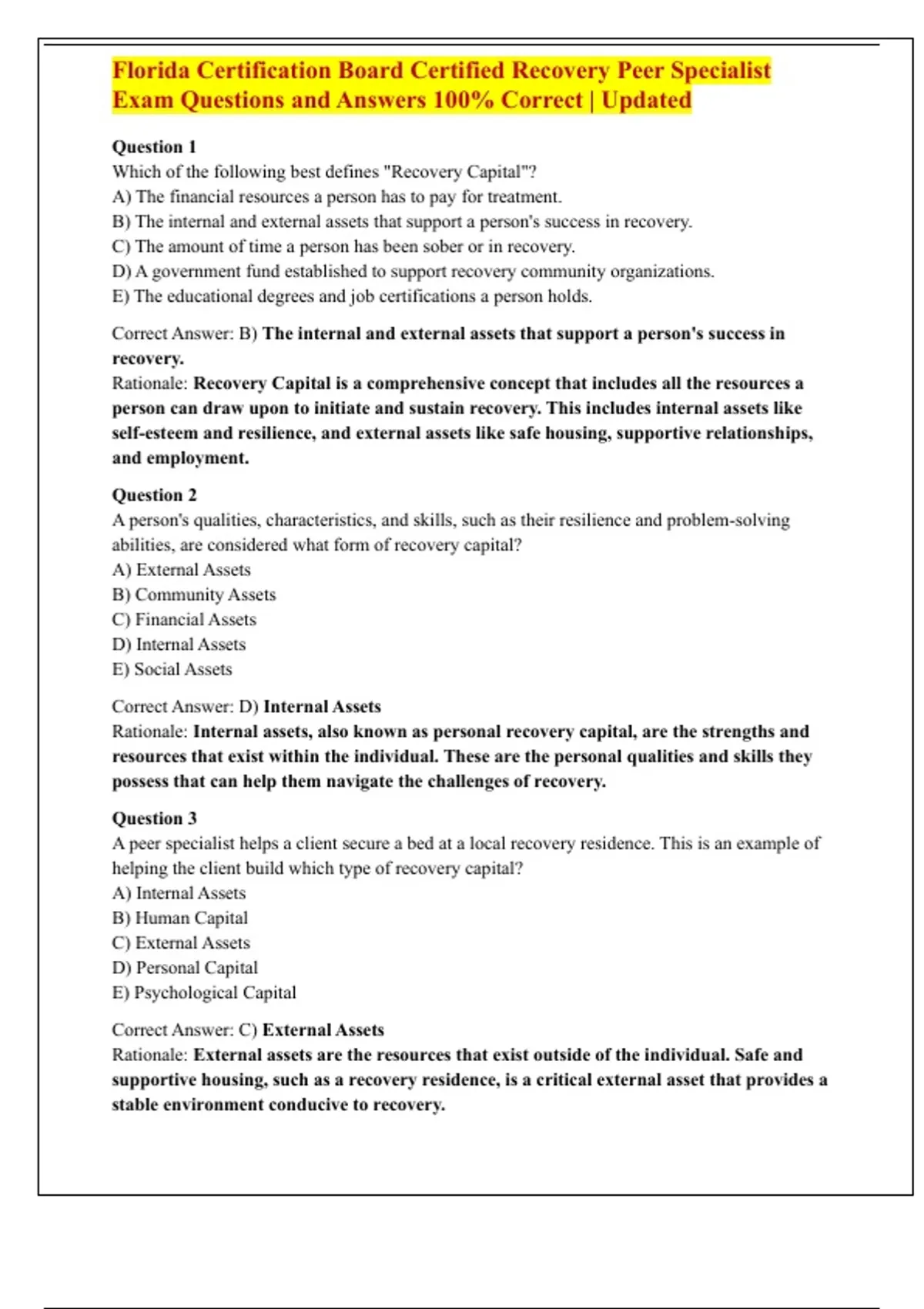 Florida Certification Board Certified Recovery Peer Specialist Exam Questions and Answers 100% Correct | Updated