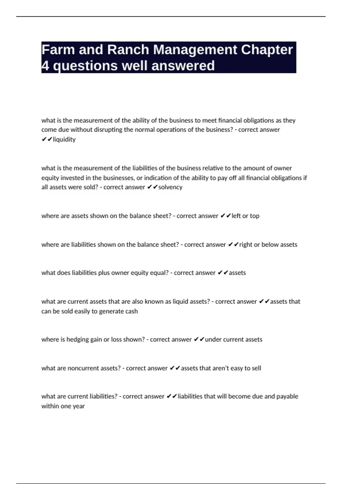 Farm and Ranch Management Chapter 4 questions well answered