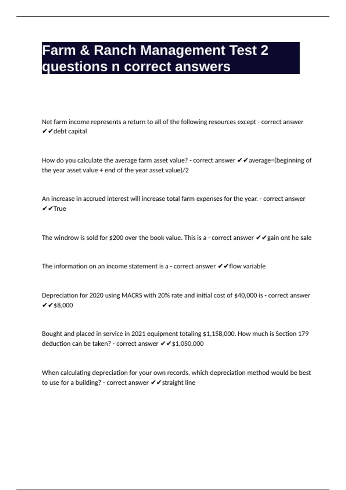 Farm & Ranch Management Test 2 questions n correct answers