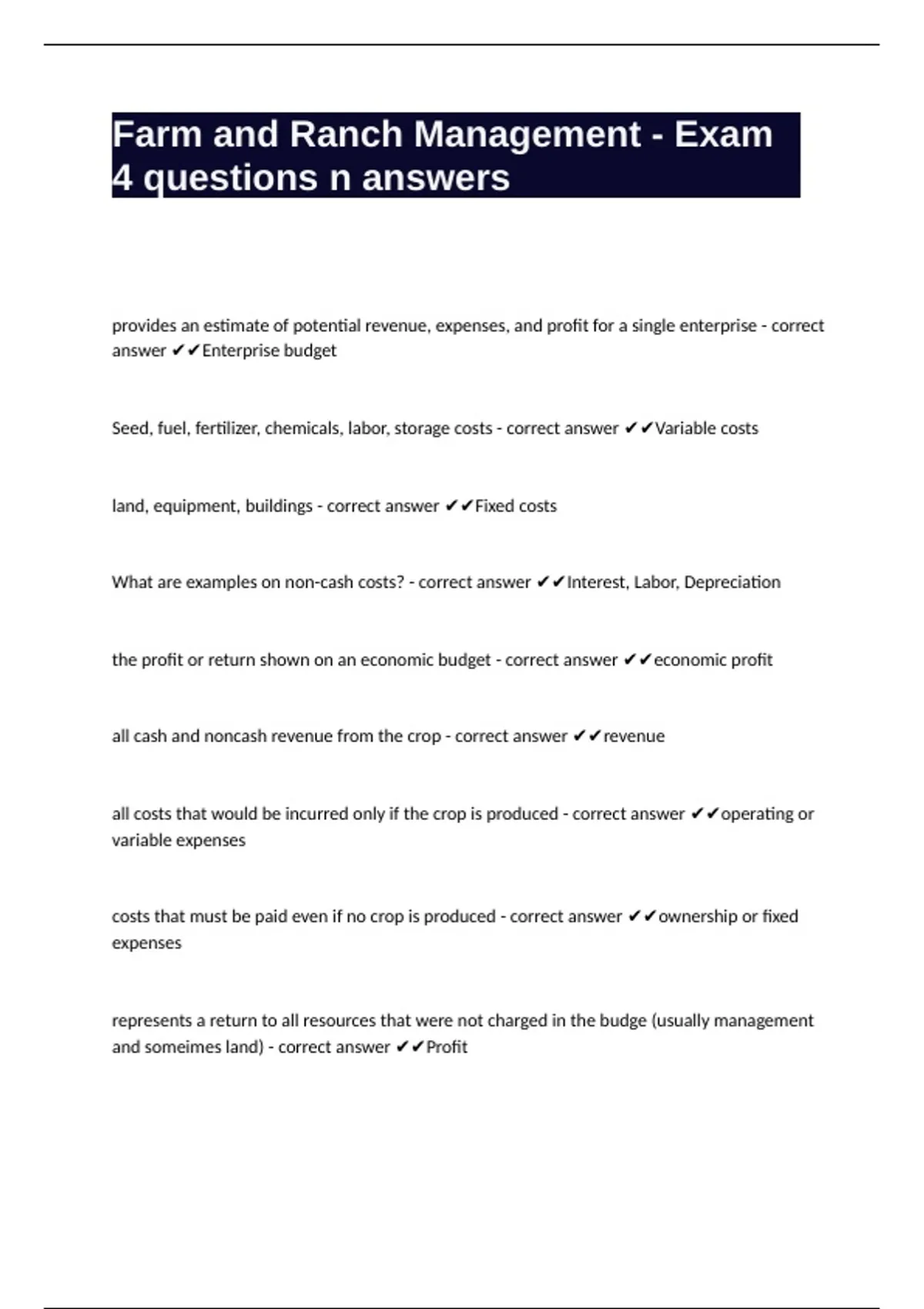 Farm and Ranch Management - Exam