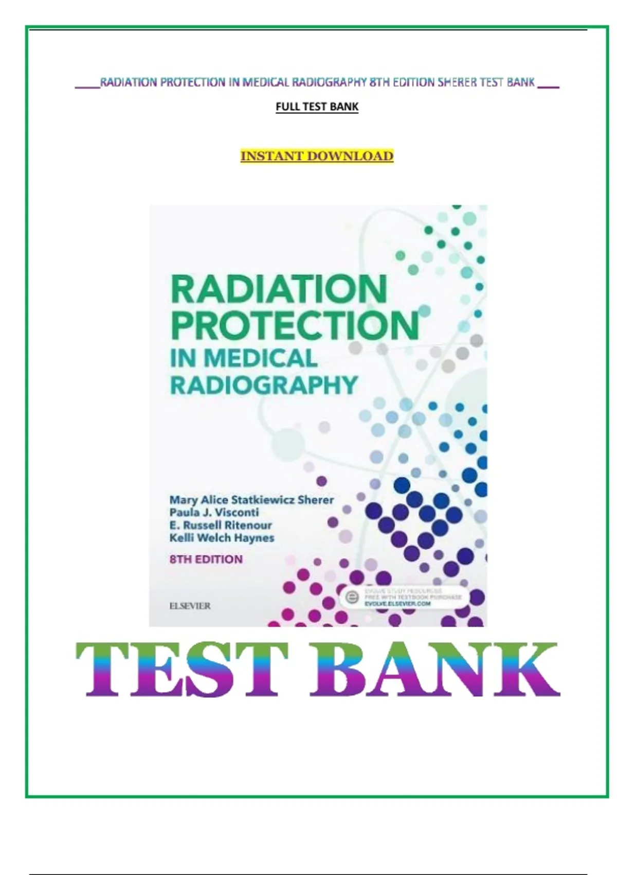 , Radiation Protection in Medical Radiography 8th Edition Sherer Test B
